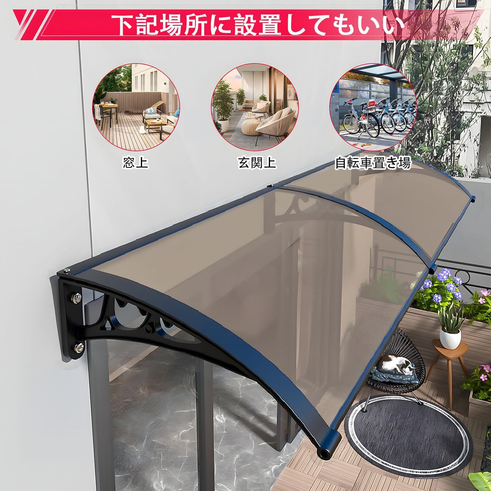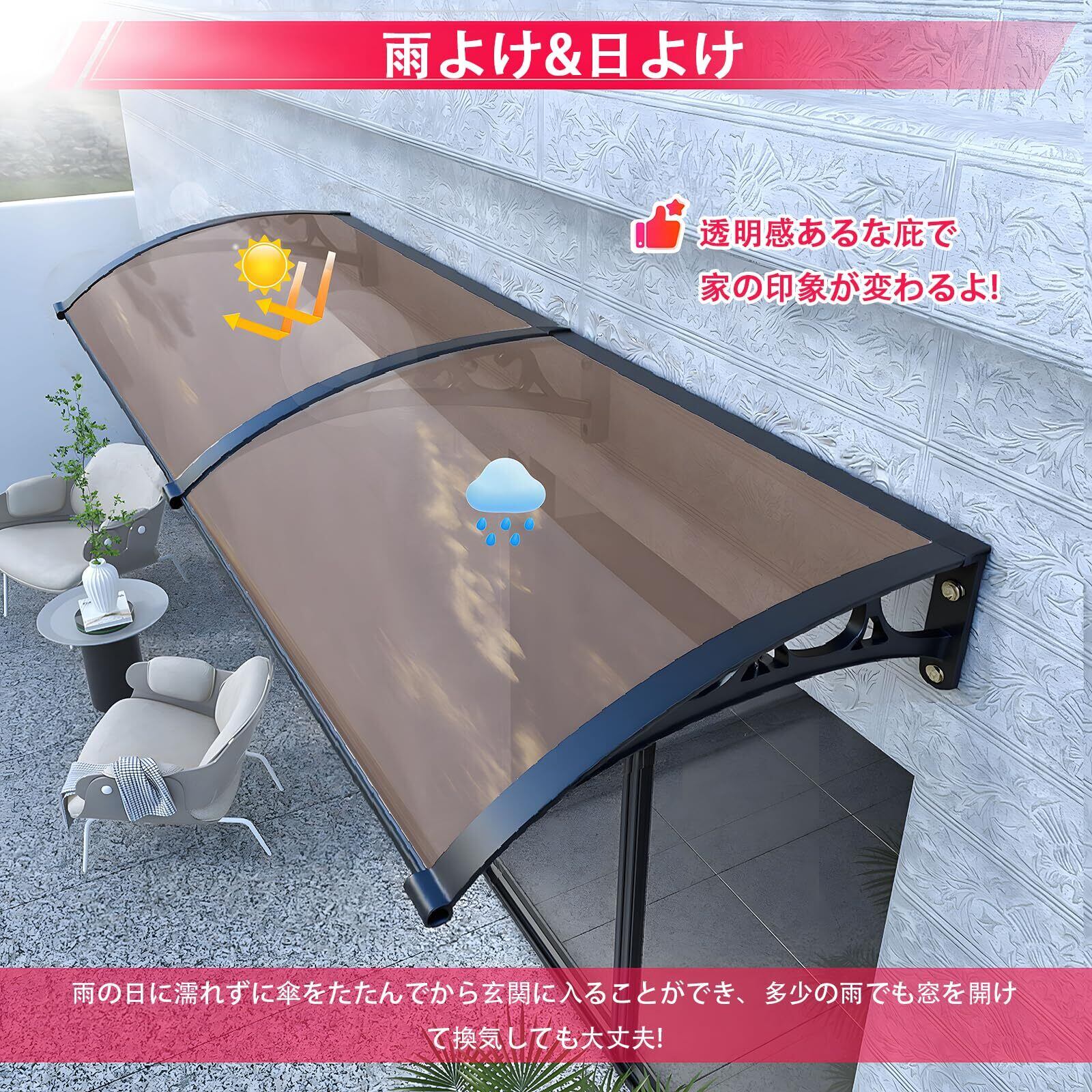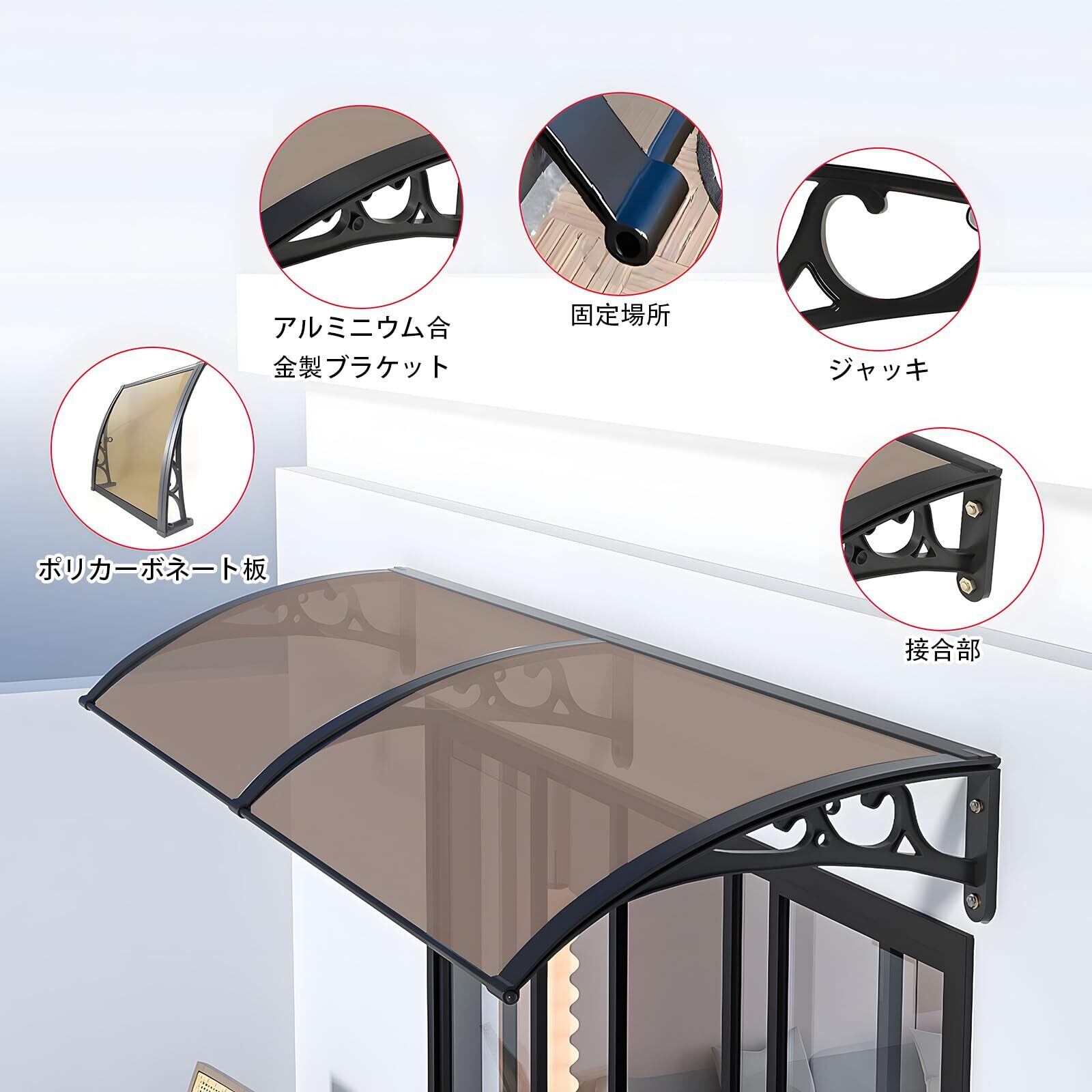【悪天候への対応 梅雨対策】 ひさし雨よけ屋根はキャノピーは、寒い雪の冬、暑くて高温の夏、雹の天気、台風の天気で窓やファサードを保護し、10台の台風に耐えることができます。冬や雨の季節には滑りやすい入り口はありません。