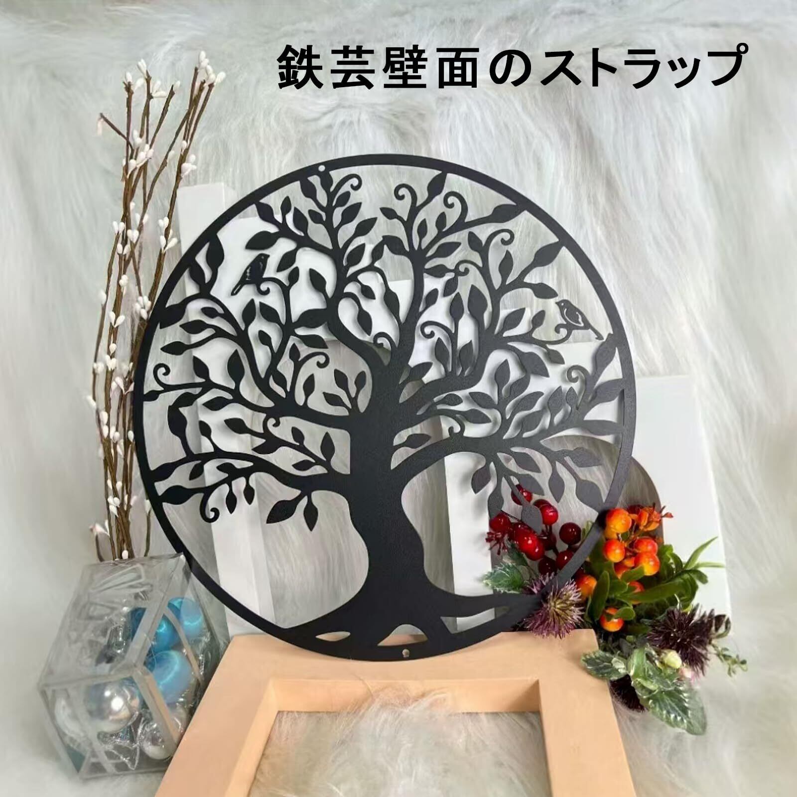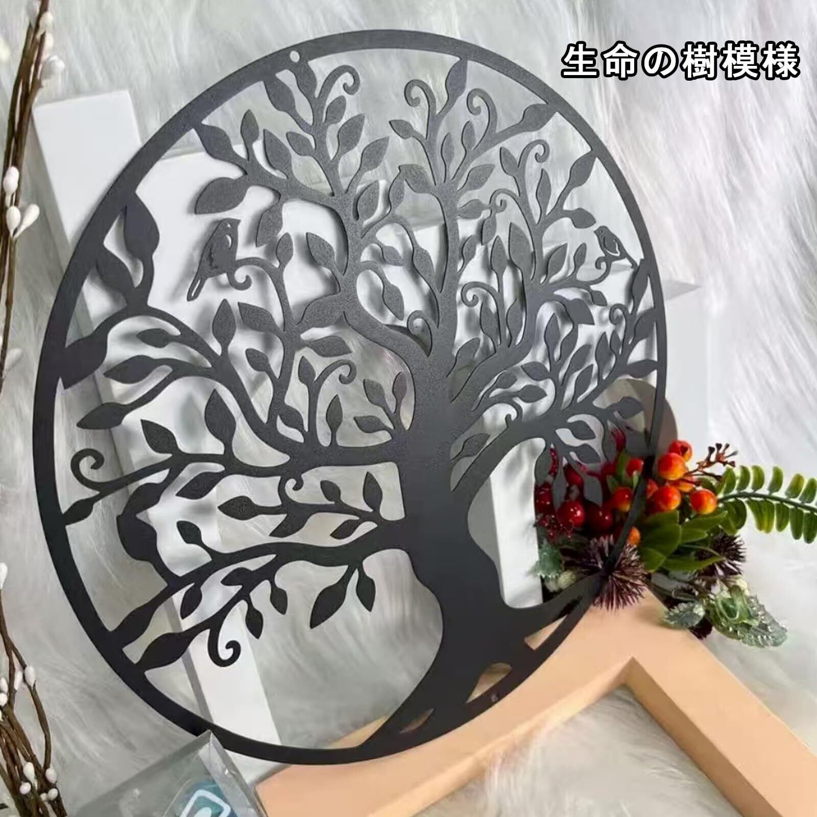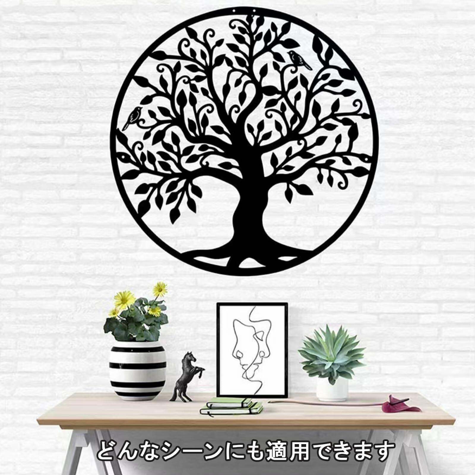 ウォールデコ 壁装飾 アイアン 生命の木 メタル壁装飾 アイアン ラウンド 壁飾り植物 木 枝 中空壁ウォールアート モダンガーデン 装飾屋内屋外庭園用 インテリア グリーンブランチ(30*30cm) | KSショップ