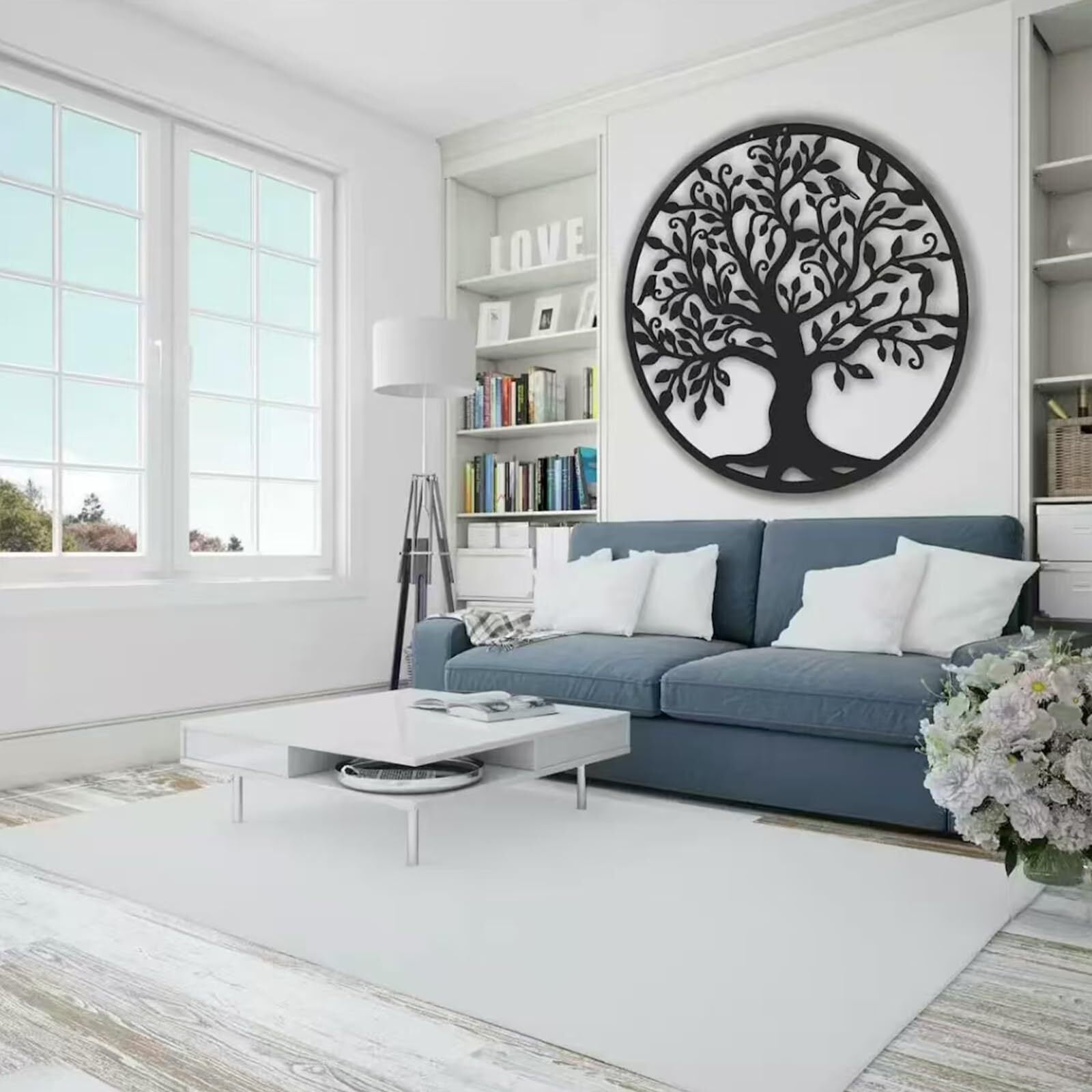 自然とモダンの融合デザイン:アイアン製の「生命の樹」を繊細な枝ぶりで再現したラウンド形状の壁アート。中空デザインが立体感を生み、屋内のインテリアはもちろん、ガーデンや玄関にもモダンなアクセントを添えます。