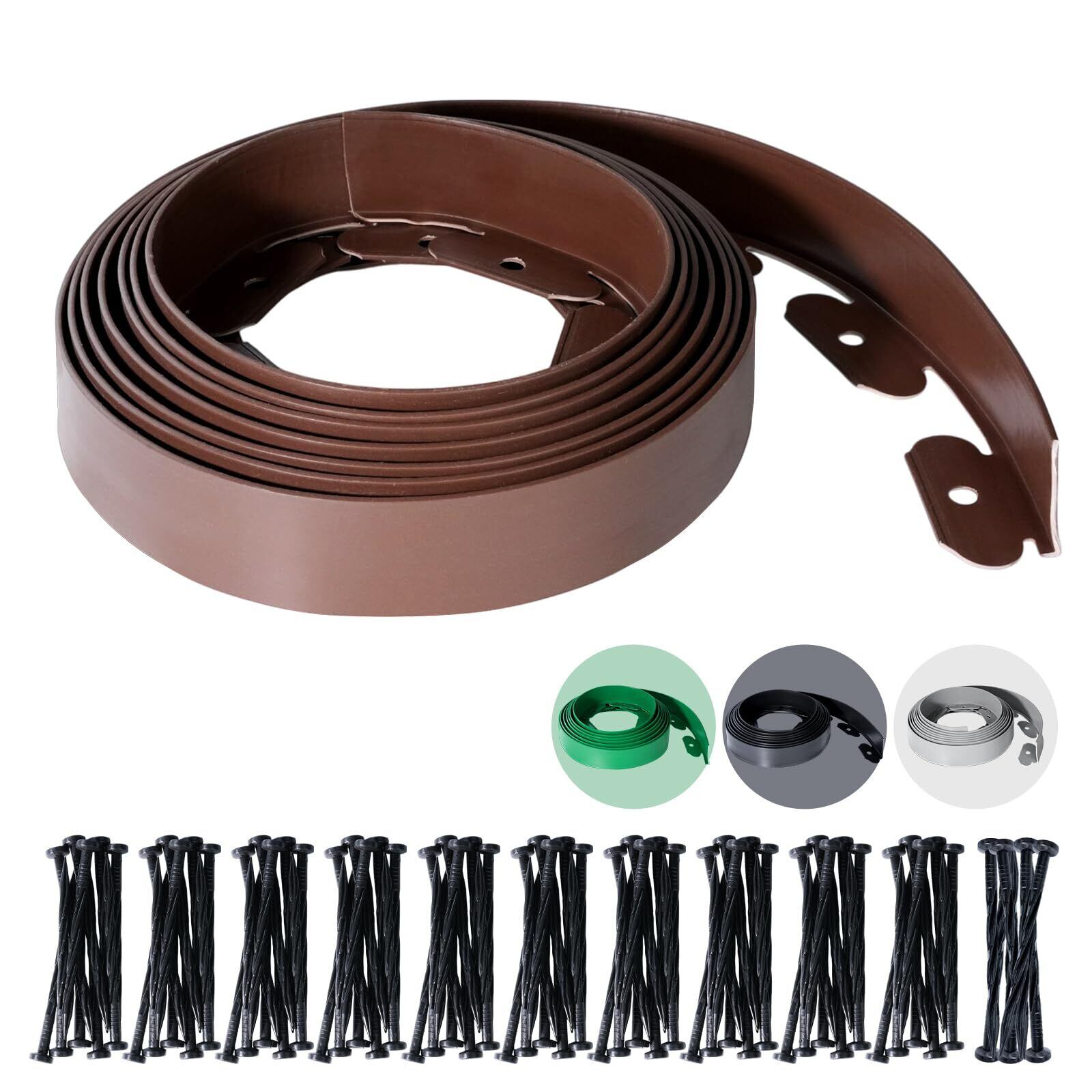 Webirth 【ペグ増量でしっかり固定!!】 ガーデンエッジ 3つの高さ (5cm/10cm/15cm) 4つのカラー ブラック グリーン ブラウン グレー 花壇フェンス 5m 10m 裁断可能 ガーデニング DIY 土と芝の根 庭造り 造園 手入れ 間仕切り 設置簡単 (ブラウン, 高さ5センチ×10メートル) | KSショップ