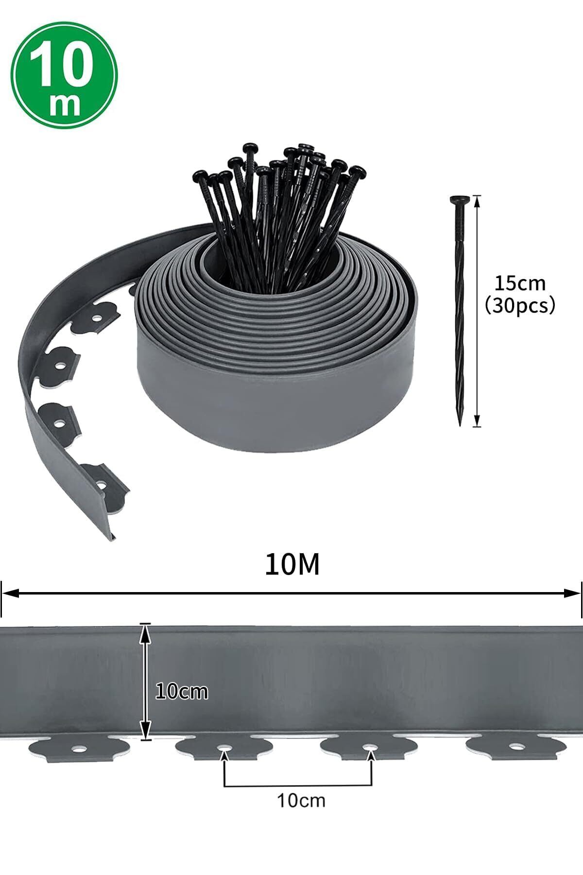 ガーデンエッジ フェンス 土留め 園芸シート 花壇 芝生 根止め 境界線用 柵 固定ピン 裁断可能 ガーデニング DIY 土と芝の根 庭造り 造園 手入れ 間仕切り 設置簡単 (高さ10cm×長さ10m, ブラック)