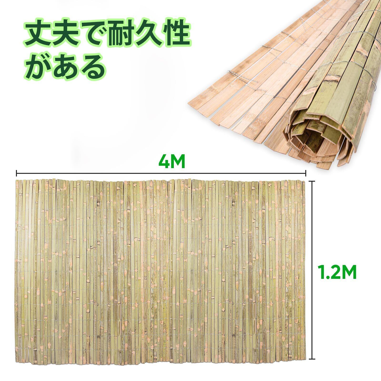 高品質:竹垣フェンスは天然竹から選ばれています。中緯度のモンスーン気候に成長の高級竹を使用しています。毎枚フェンスはきれいで、強く、まっすぐです。竹スラットフェンスは防水処理と熱処理が施されていたので、耐久性があり、何年に長持ちします。