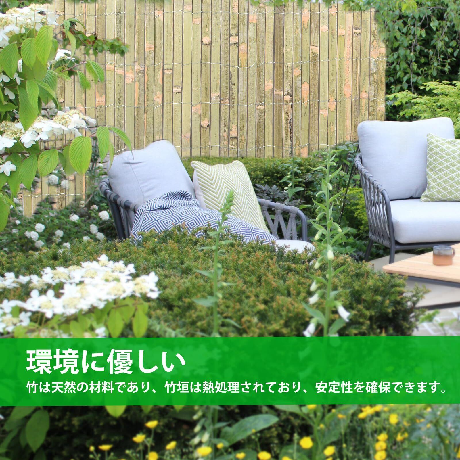 環境に優しい:竹フェンスは環境に優しい材料’です。竹フェンスは天然竹ですから、環境に無害です。また、この竹柵は自然な外観を維持しながら、理想的な庭のバリアを形成します。