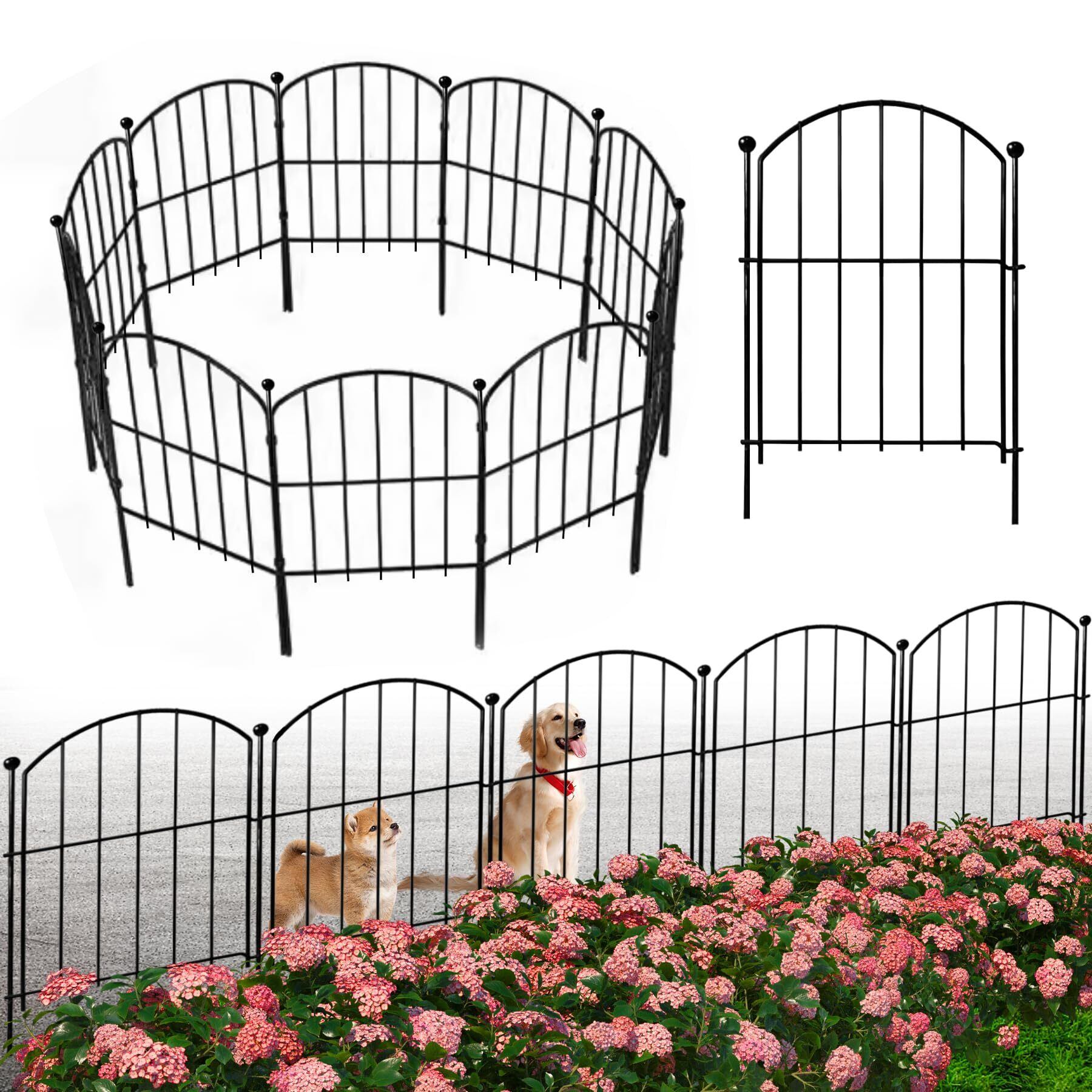 SONGSONG ガーデンフェンス 10枚 ガーデニングフェンス 植物保護 花壇/門扉/柵/ガーデン/菜園/DIY庭造り 鉄柵 防錆 犬 動物用バリアフェンス 簡単な取り付け 高さ0.43m×長さ0.32m 全長3.3m 説明書付き (黒-10枚入)