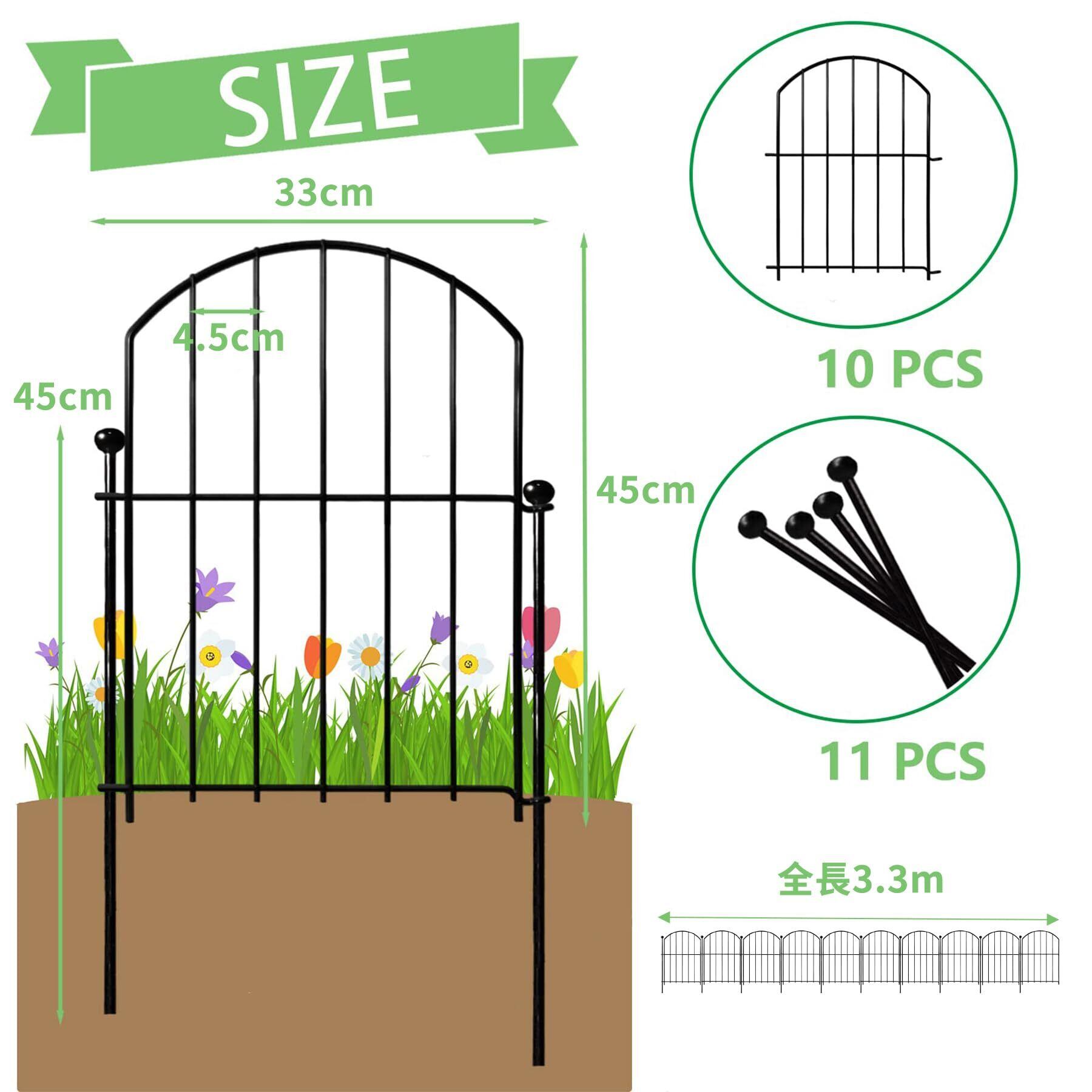 SONGSONG ガーデンフェンス 10枚 ガーデニングフェンス 植物保護 花壇/門扉/柵/ガーデン/菜園/DIY庭造り 鉄柵 防錆 犬 動物用バリアフェンス 簡単な取り付け 高さ0.43m×長さ0.32m 全長3.3m 説明書付き (黒-10枚入) | KSショップ