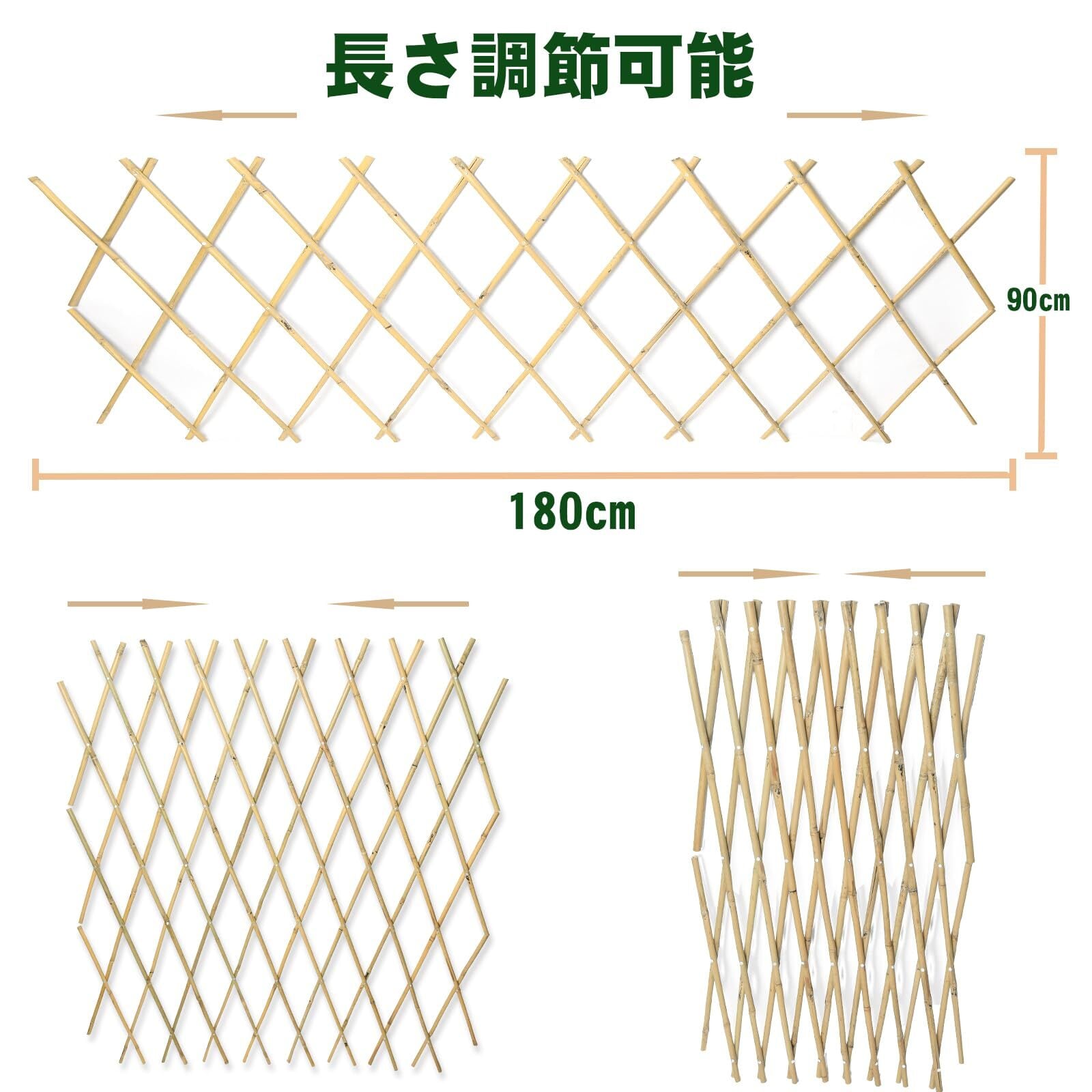 伸縮可能: 伸縮式竹垣は十分な柔軟性があって、ニーズに応じて必要なサイズ簡単にエキスパンダーできます。完全に拡張されたサイズは長さ180 x高さ90cm。複数のフェンスを連結して使用することもできます。