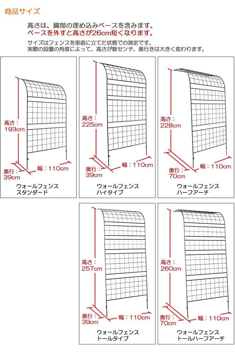 緑のカーテンをもっとおしゃれにつくりたい…壁面にバラを這わせたいけどなんだか難しそう……そんなときにはこのアイアン製「フレキシブルウォールフェンス」が大活躍!!壁に立てかけるだけの超カンタン設置!!先端には保護・滑り止め用のゴムキャップがつけられ、土の地面には付属の埋め込みベースでしっかり固定出来ます。おしゃれなシルバーグレーのハンマートーン仕上げとシンプルなグリッドデザインが植物やガーデンをより一層ひきたてます。フレキシブルウォールフェンスは幅が2種類(ワイド110cm/スリム62cm)、フェンスのつなぎ方で形状・高さを自由に変えられるようになっており、こちらはワイドタイプ、ベーシックな壁掛けタイプに延長フェンス2枚を追加しハーフアーチ状に使えるハーフアーチセットの販売です。ご希望のサイズ・形状をご検討いただき[サイズ][カラー/色]メニューよりお選びください(販売中でないものはメニューに表示されません)。