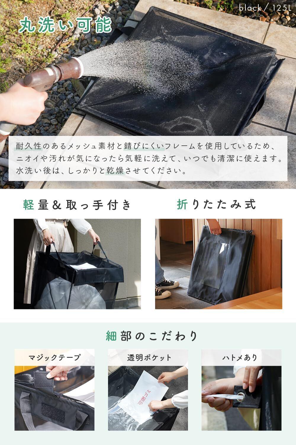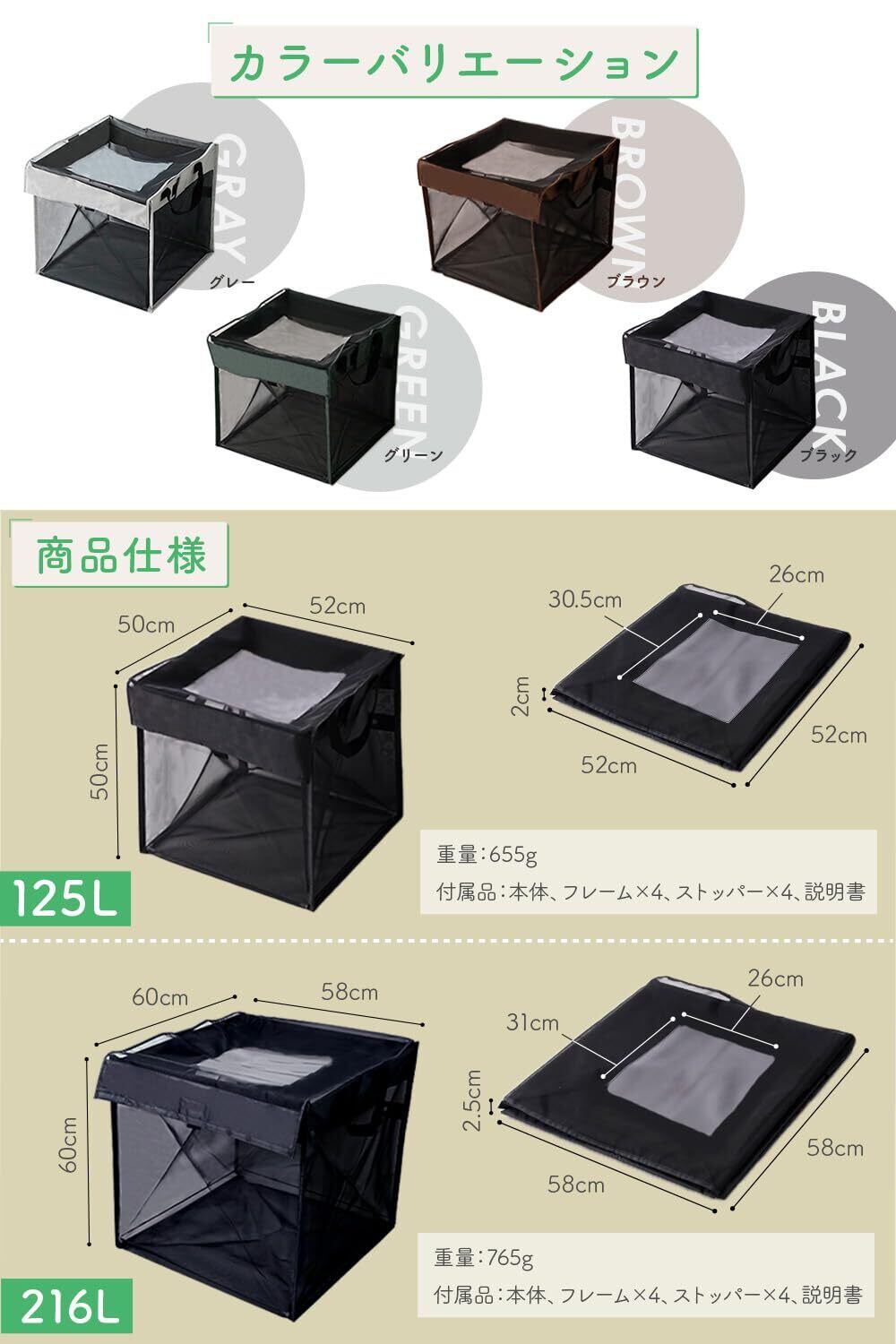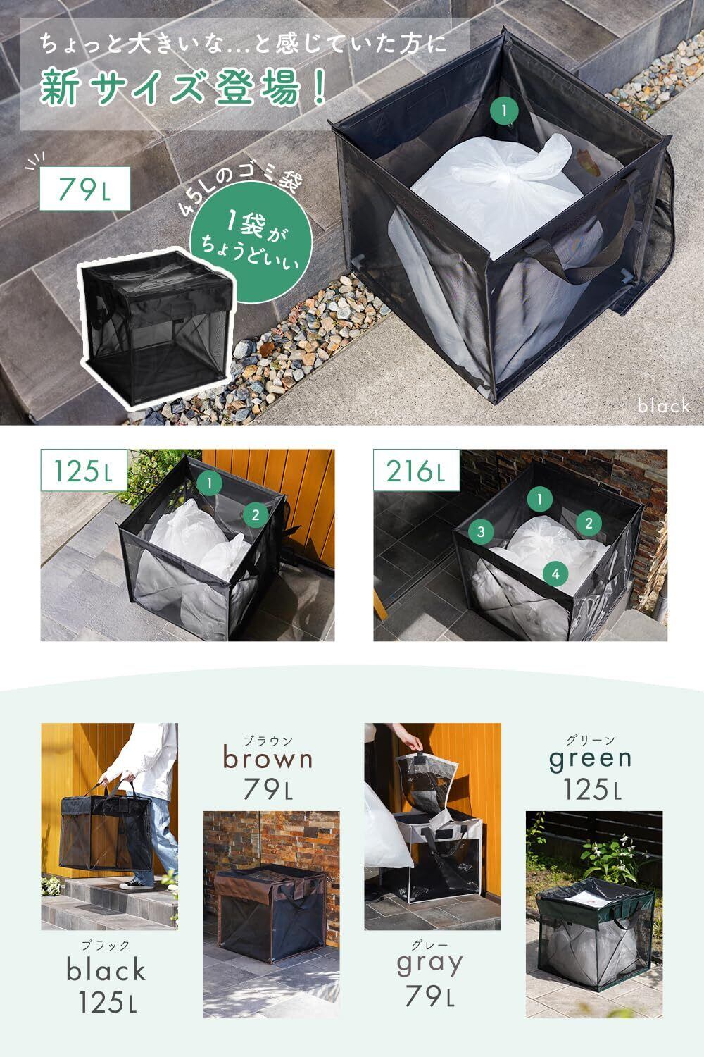 【45Lゴミ袋約袋収納可能!!】79L / 125L/ 216Lの選べる大容量ゴミステーションを簡単組立。大型な固定されたものではなく、軽量なゴミネットボックスなのでバルコニーや庭、玄関先など設置場所を選びません。メッシュデザインで臭いもこもらないので一時置きに最適です。