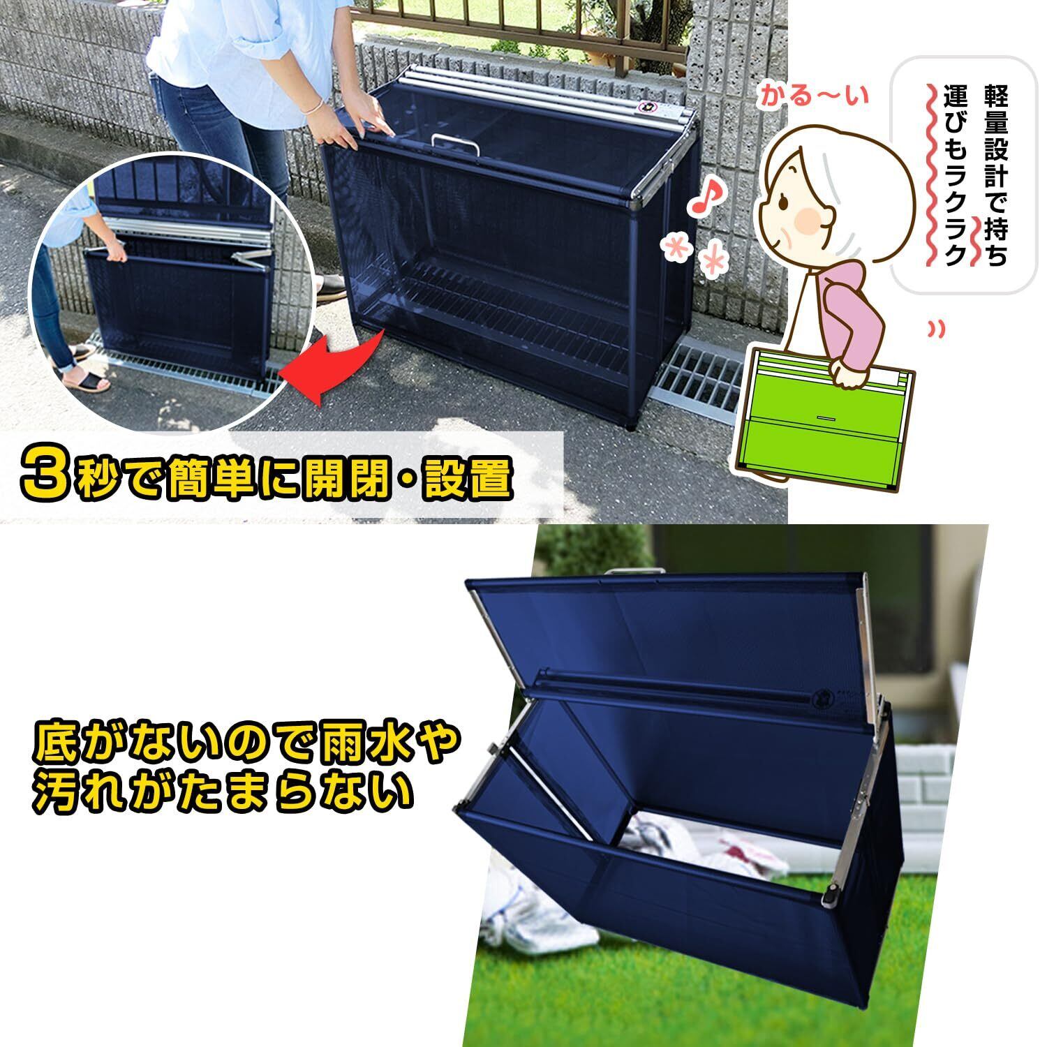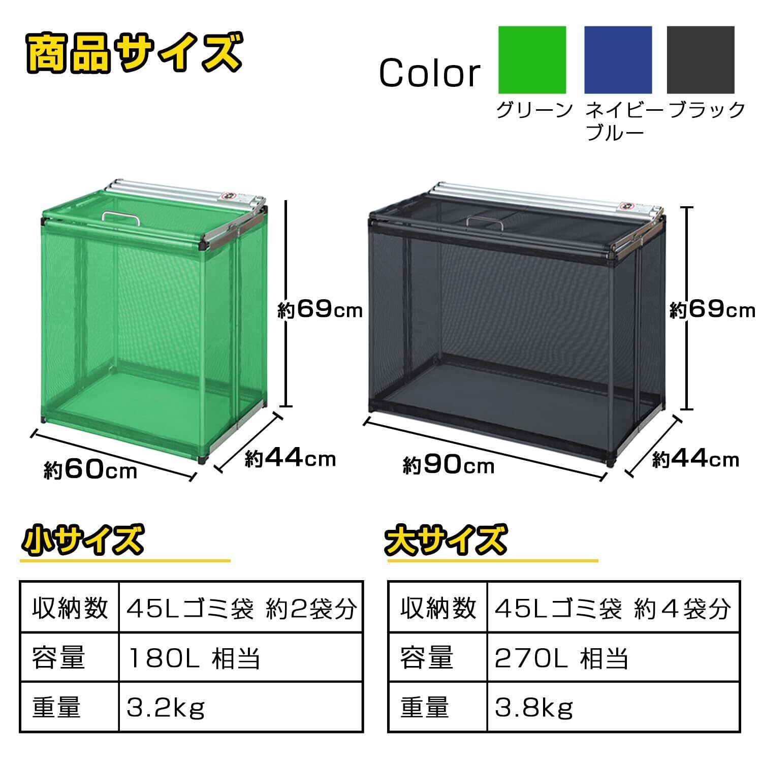 日本製 ネットボックス ゴミステーション 屋外 防鳥ネット ゴミ箱 3秒 折りたたみ カラスよけ 収集庫 ゴミストッカー 大容量 ゴミ収集箱 軽量 コンパクト 約180L アルミニウム 曽我製作所 からすノンノン 幅60cm ネイビーブルー | KSショップ