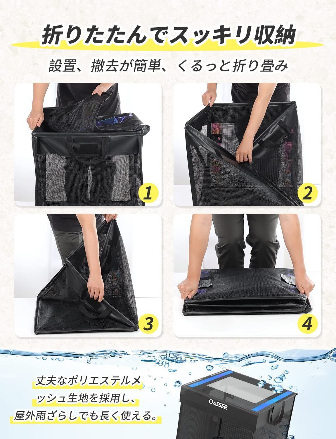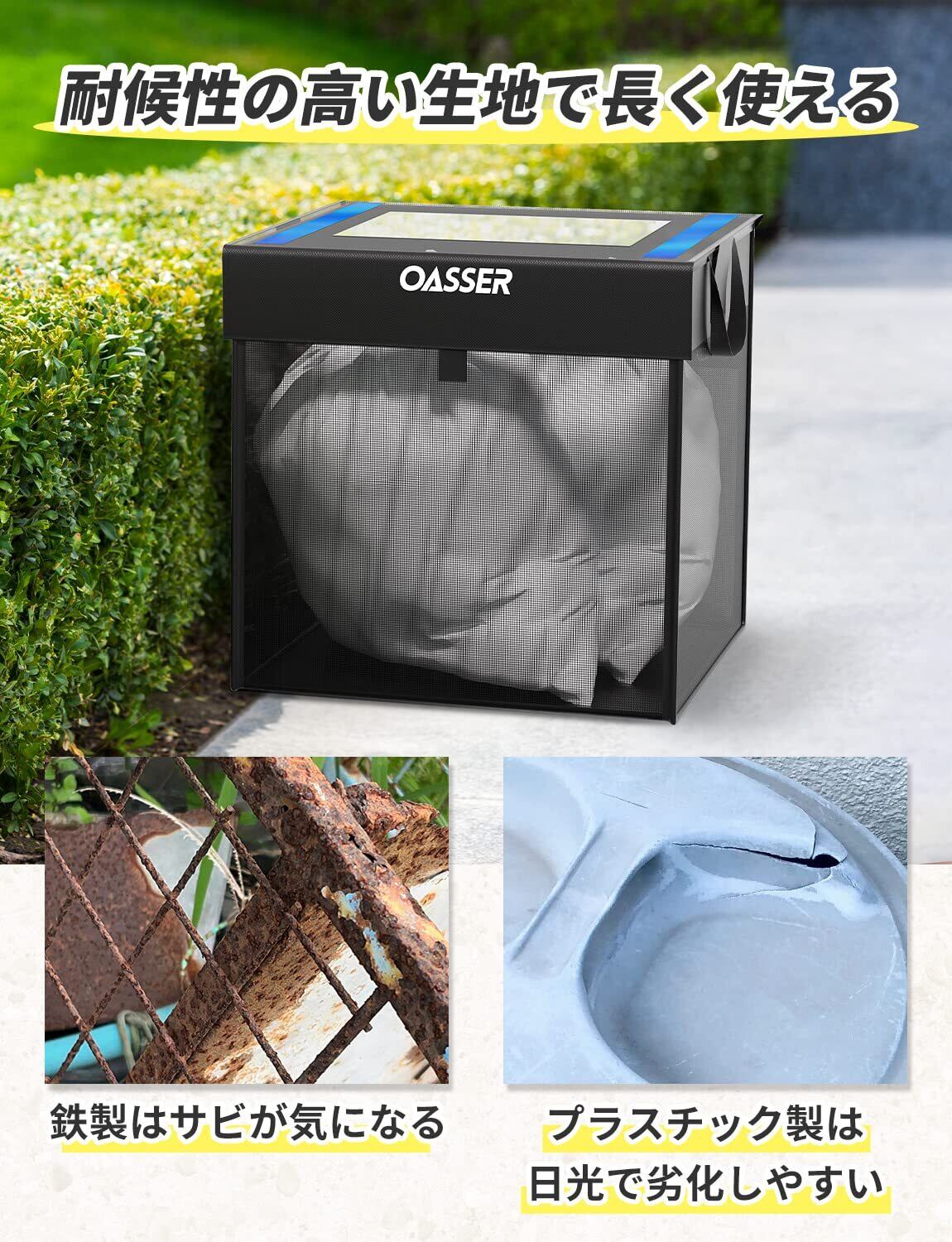 Oasser カラスよけネット 125Lカラスよけゴミ箱 大容量ゴミネット ステーション 折りたたみ式 屋外屋内置き 戸別回収向け ブラック (ポリエステルメッシュ)