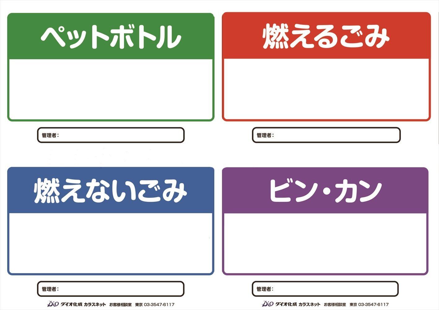 前面には収集日や自治会名などを書いて表示できるクリアポケット付き。サンプルとしてに収集日を記入できるA4サイズの用紙が4種類付属します。