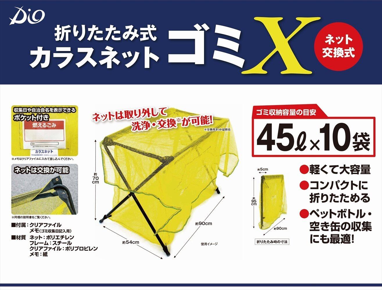 ダイオ 折たたみ式ゴミ収集用ステーション 「ゴミX」 イベント、資源ごみ回収に 黄色 45Lごみ袋10袋程度収納可能 用ネット(別売)あり 1セット入(フレーム+ネット1枚付)