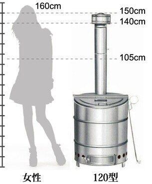 ●本体サイズ:直径50×高さ60cm<br>●煙突サイズ:直径11×高さ85cm<br>重量(約): 13.0kg<br>●材質:ステンレス<br>付属品:ロストル、灰掻き棒付き