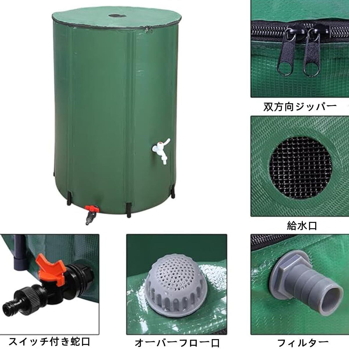 FTWIND雨水タンク 家庭用 集水器 貯水タンク 50L~1000L選択可能 屋外折りたたみ式ポータブル ウォーターバケツ 防災用雨水タンク 屋外用 園芸植物灌漑可能 雨を貯めて節水 貯留タンク 簡単設置 雨水を貯めて節水可能 農業 緊急給水 雨水収集用 (緑, 40×78cm(100L)) | KSショップ