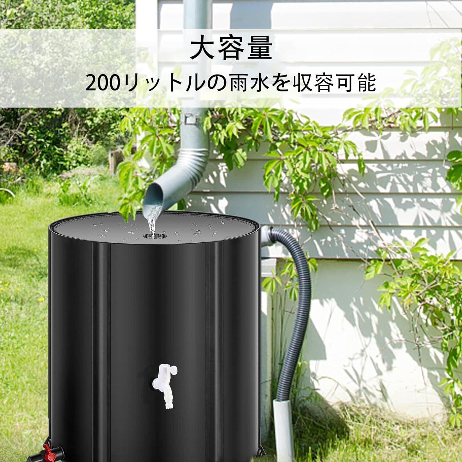 LOOGHARTTE 折りたたみ可能な雨水タンク 家庭用 - 200L携帯用水タンク 雨水、折り畳み式の貯水タンク 屋外のダウンスパウト、フィルター&スピゴット&オーバーフローキット付きの雨水タンク 集水器 (ブラック)