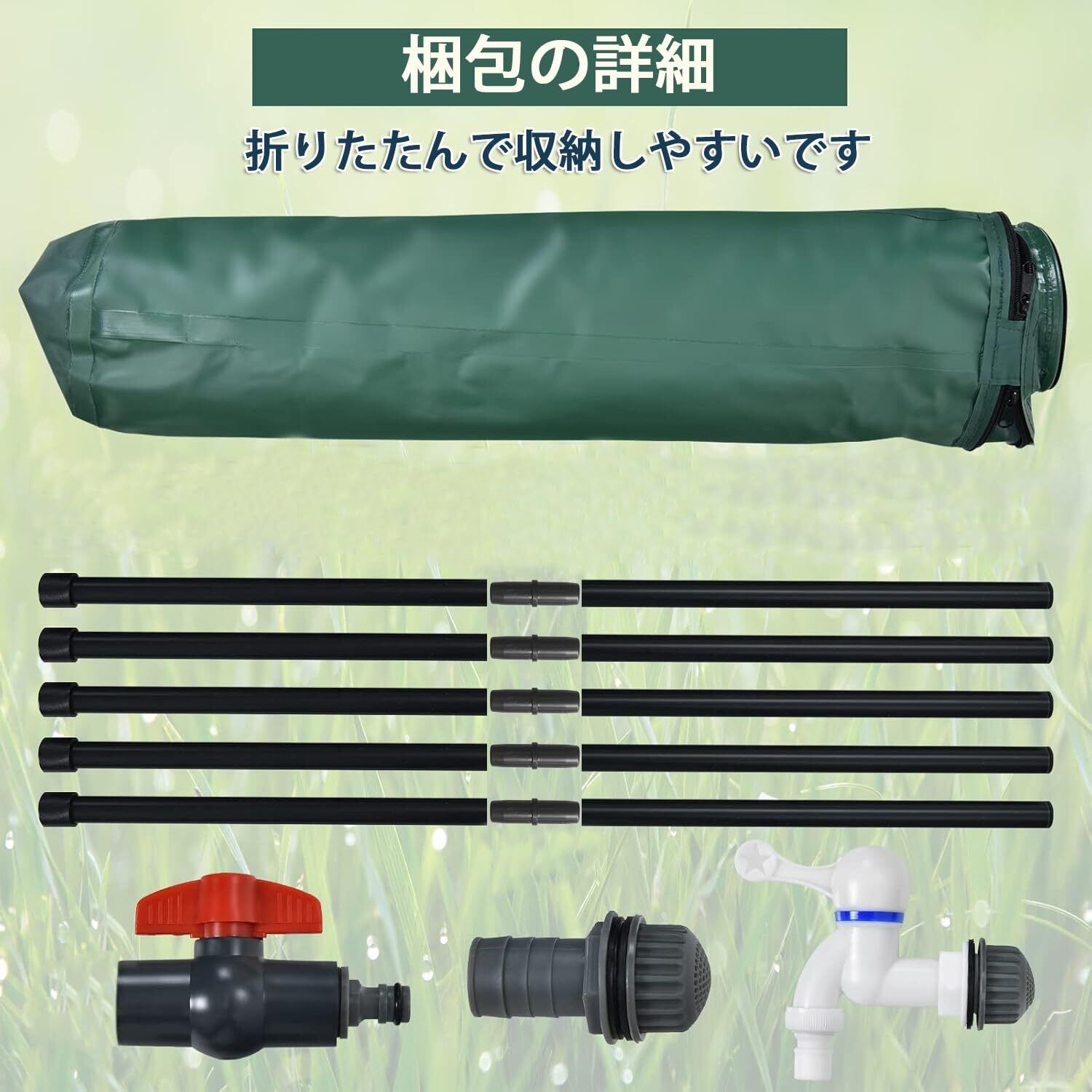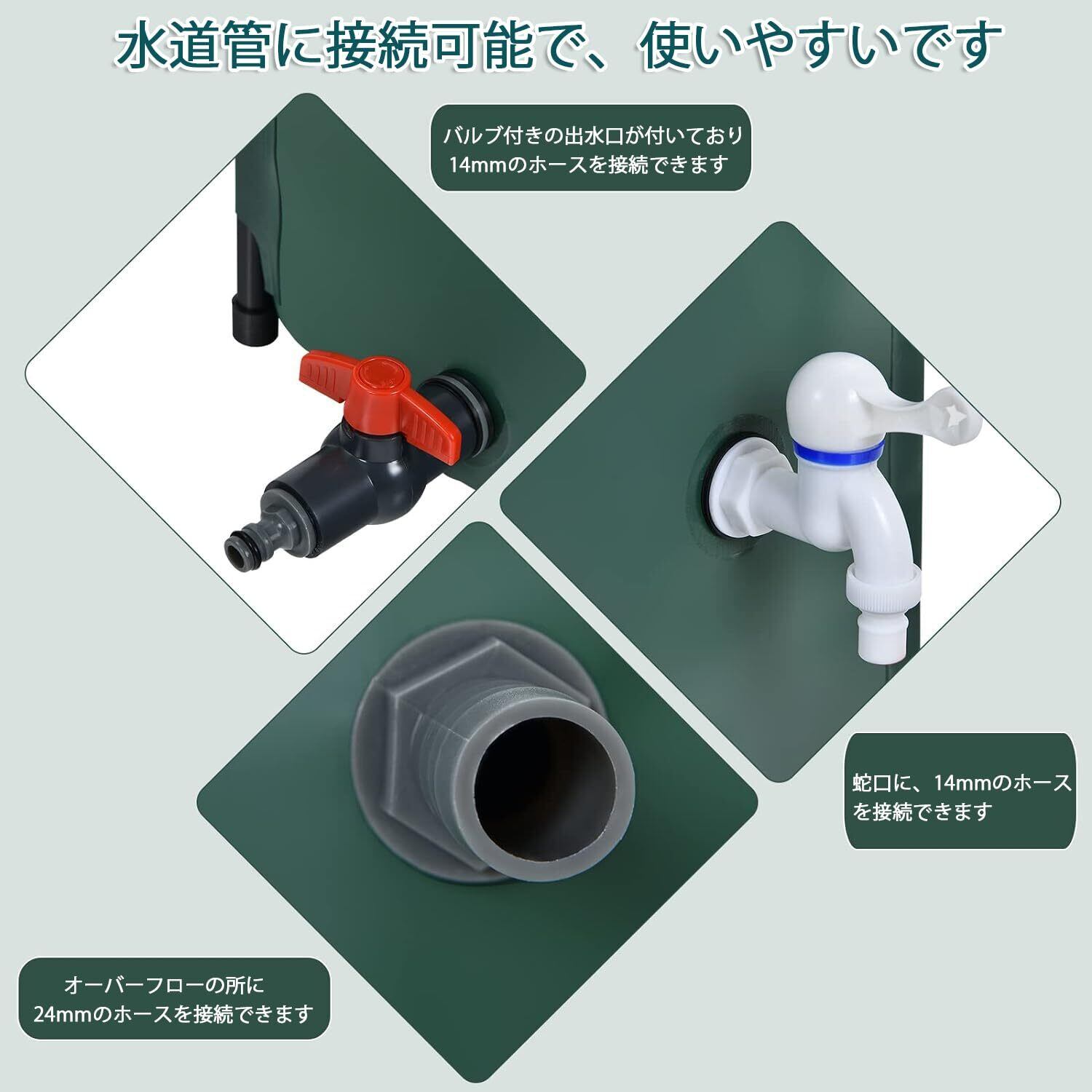「保存便利」:このレインバレルは、簡単に保管および持ち運びできるように折りたたむことができます。さらに、その緑の表面はあなたの裏庭の光景に適しています。