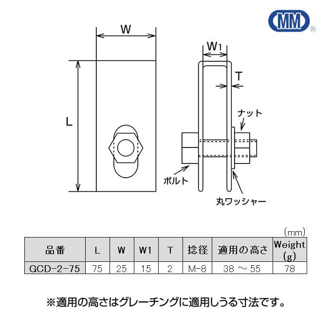MM 水本機械製作所 SUS304 ステンレス グレーチングクリップ GCD型 GCD-2-75