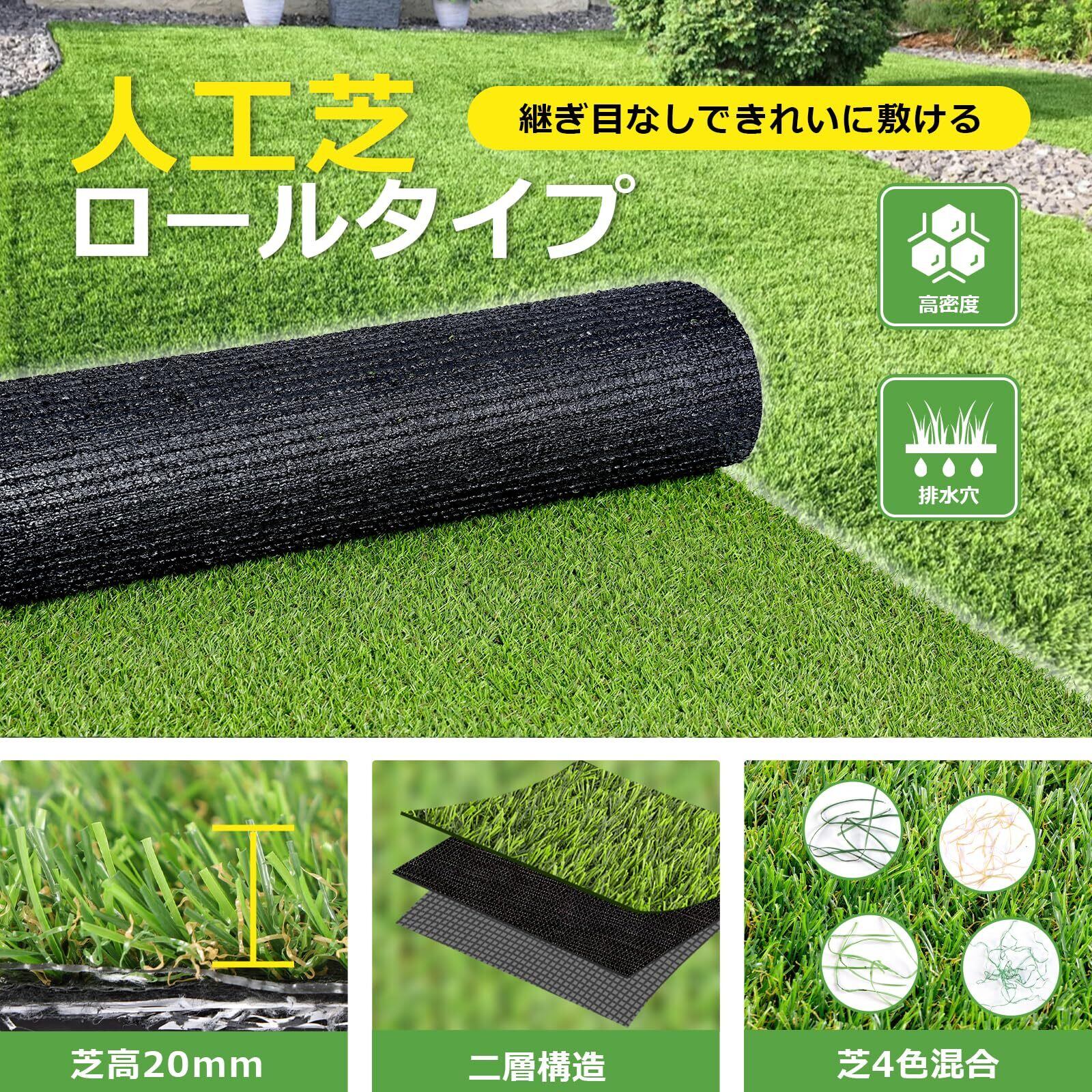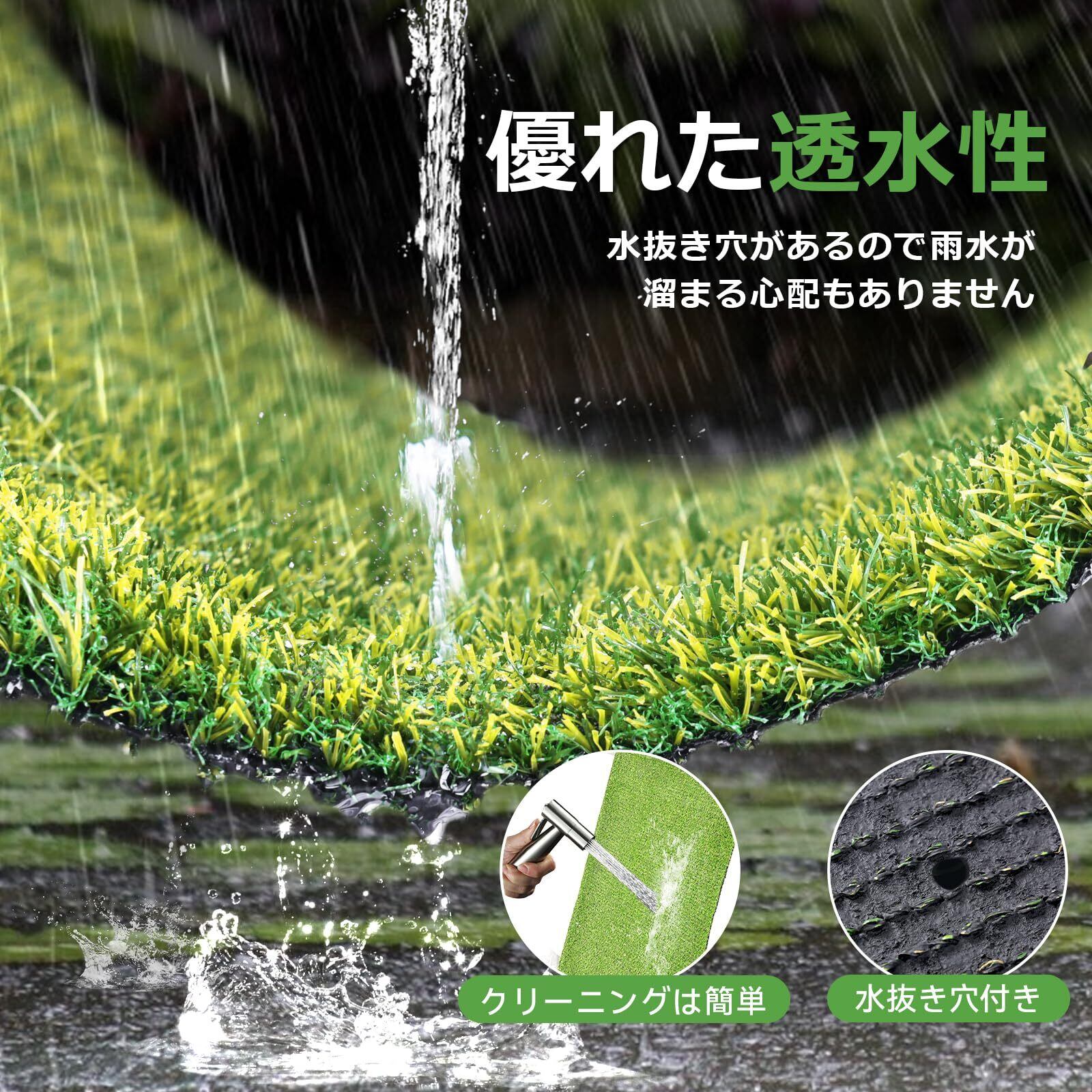 【幅広く適用/お手入れやすい人工芝】庭、ベランダ、バルコニー、テラス、屋根などの屋外やエントランス、幼稚園、店舗、室内駐車場などの屋内に適しています。屋内のフロアマットやカーペットとしても使用できます。取り扱いが簡単、ハサミを差し込むとサクッと切れます。長さが20mmと短いので掃除がしやすく、汚れは水洗いできます。