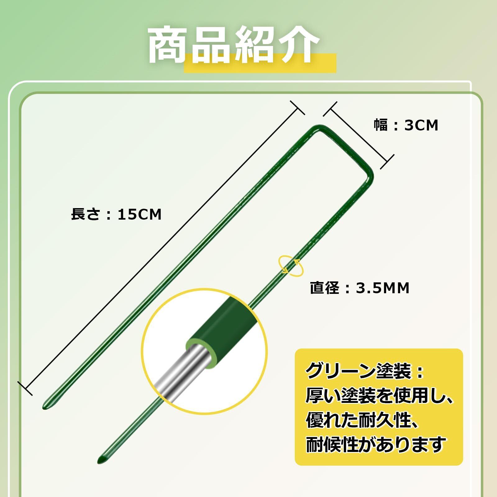 【幅広い用途】U字ピンは人工芝をしっかり固定し、遊んでいる最中にズレたり、風で飛ばされないようにするために必要です。防草シート、人工芝、ザバーン、不織布、マルチ、灌水ホース、ビニールマルチ、農業用防虫ネット、各種シートとマット等の園芸用品を地面にしっかり固定させるピンです。 ガーデニング・農業・庭用だけでなく、キャンプの時テントの固定ピンとしておすすめです 。