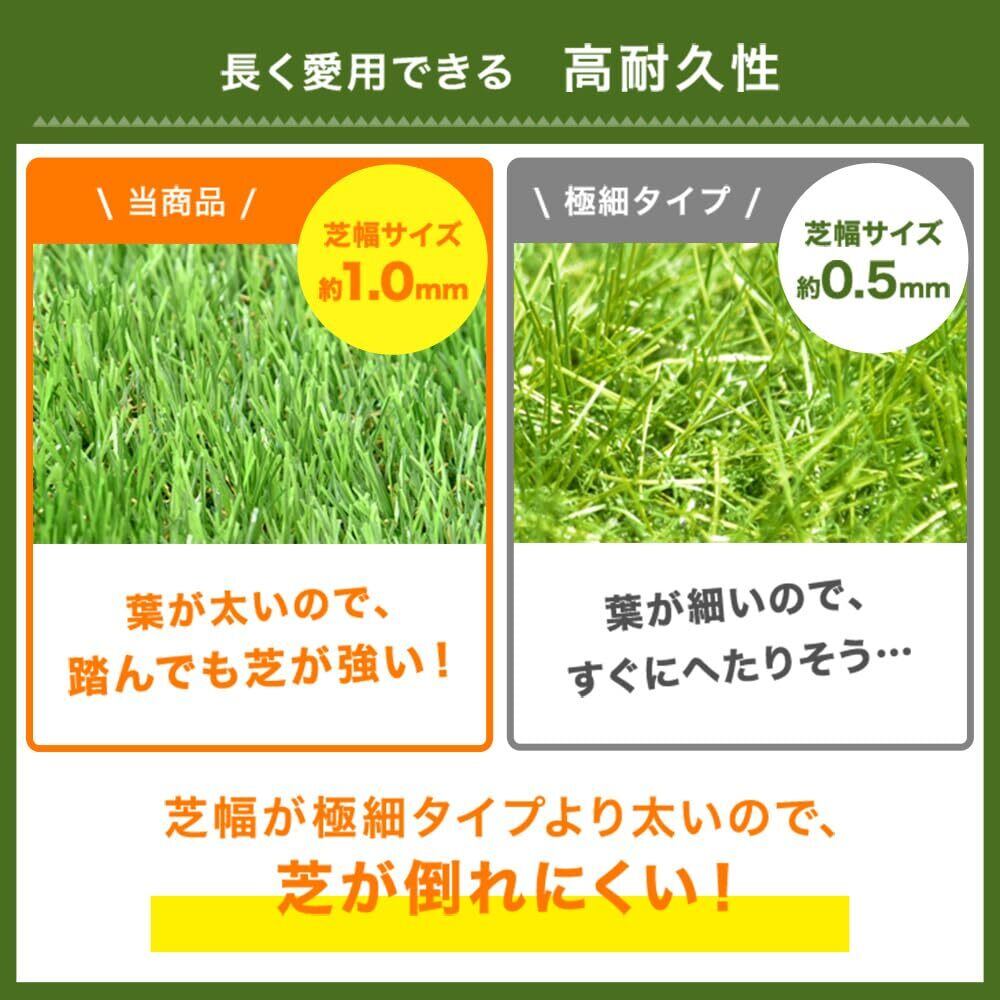 【梱包サイズ】25×25×100cm 【生産国】中国・ベトナム 【人工芝の汚れの対処方法】汚れが気になったら、水洗い・モップでのこすり、掃除機でのごみの除去等でご対応ください