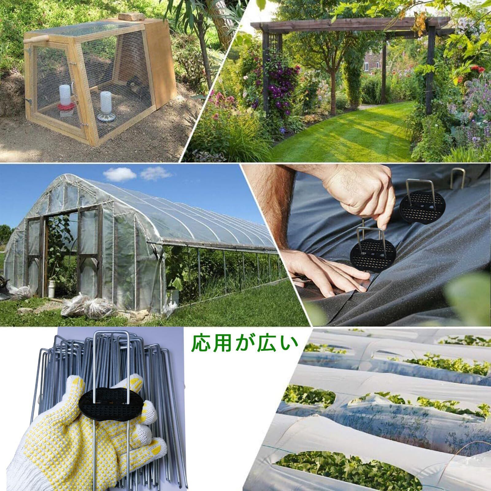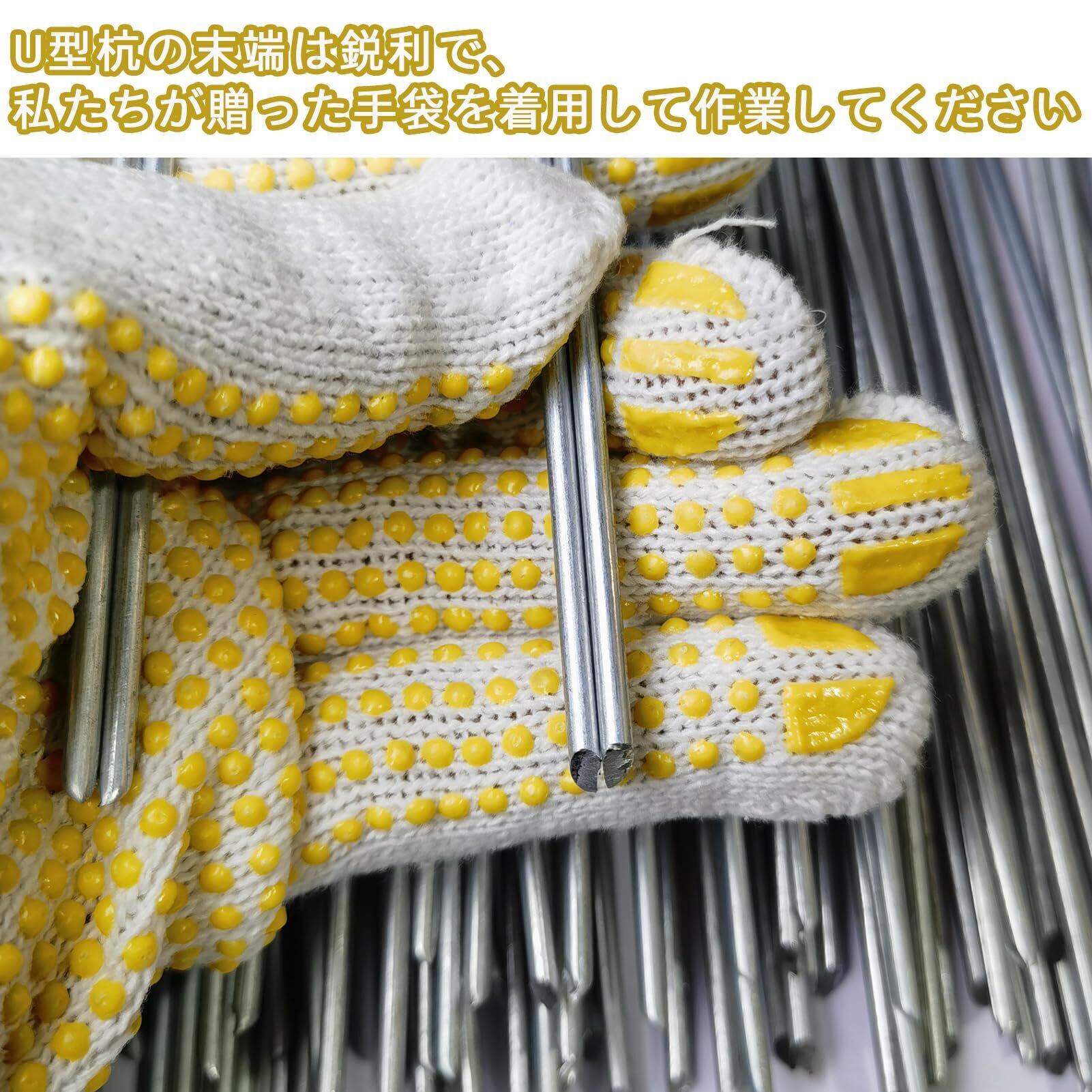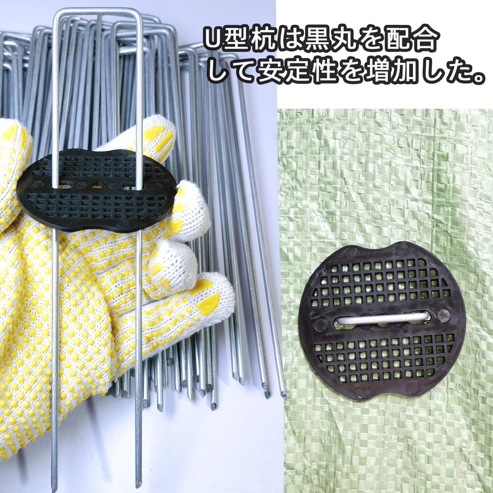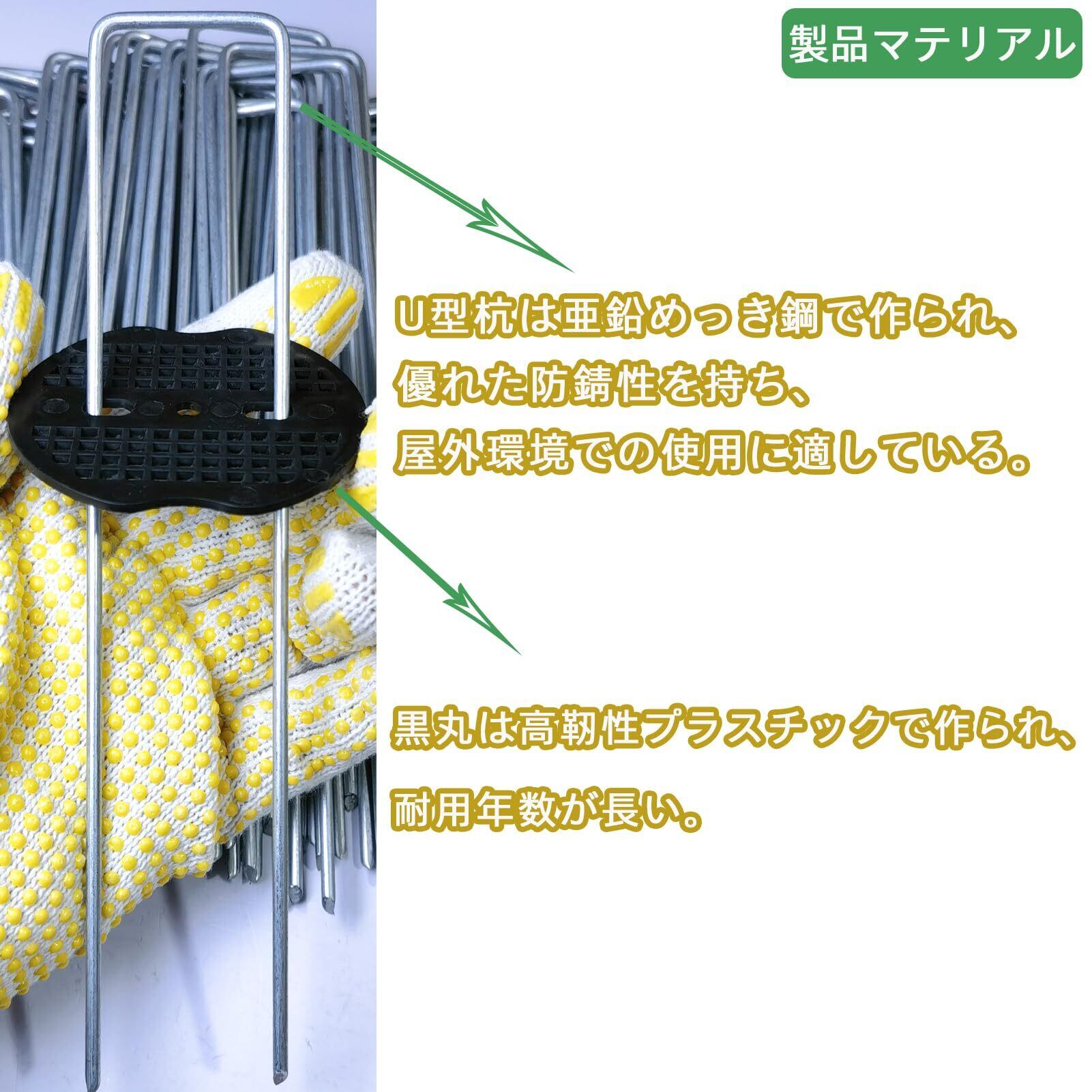 私たちのU型杭は良質な亜鉛めっき鋼材で作られ、優れた防錆性と耐食性を持ち、屋外環境で何年も使用することができます。 包装数量:15センチU型杭400個、黒丸400個、補助工具1個、作業手袋1足を含む。