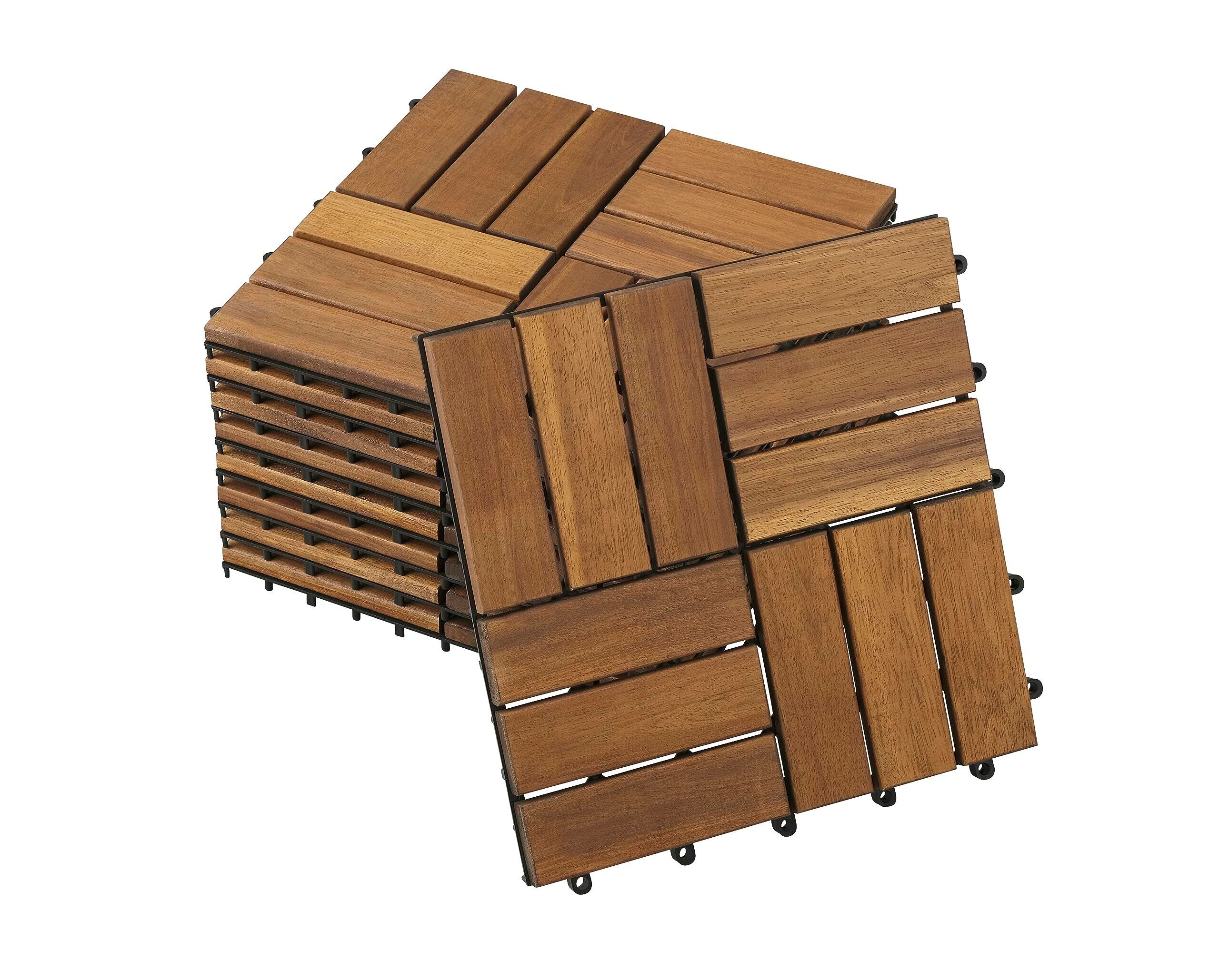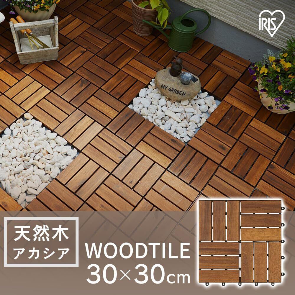 【セット品】 アイリスオーヤマ(IRIS OHYAMA) ウッドタイルデッキ ブラウン 9枚入 天然木 工具不要 簡単設置 ベランダ WTD-12