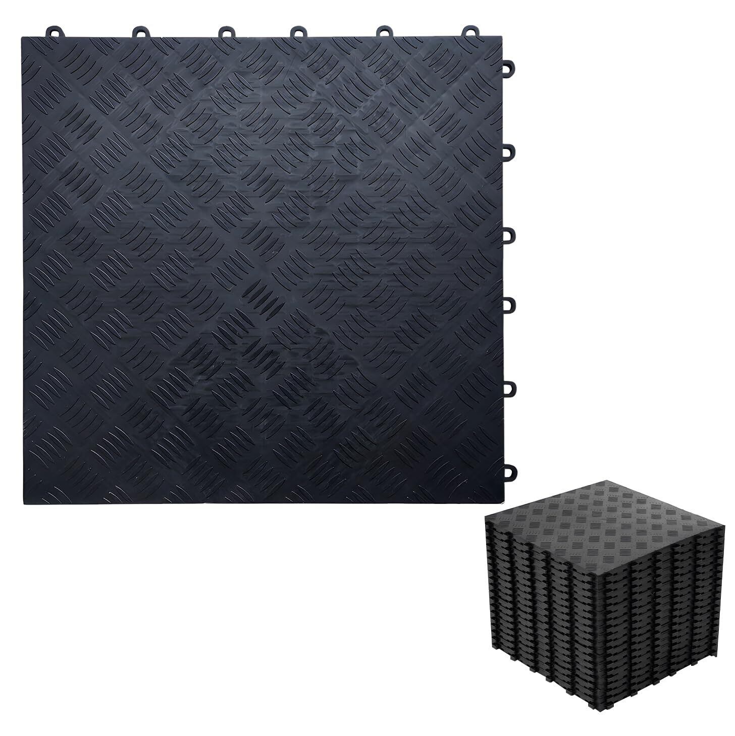ガレージタイル ガレージ フローリング 40×40cm インターロッキング 連結可能 簡単施工 はめ込み式 厚さ1.8cm 車両対応 ポリプロピレン製 駐車場 20枚入り モジュール式フロアシステム 屋外屋内 はめ込み施工バイク マット ガレージ フロアタイル洗車 車 バイク 業務用 高耐荷重モデル 穴なしタイプ (ブラック)