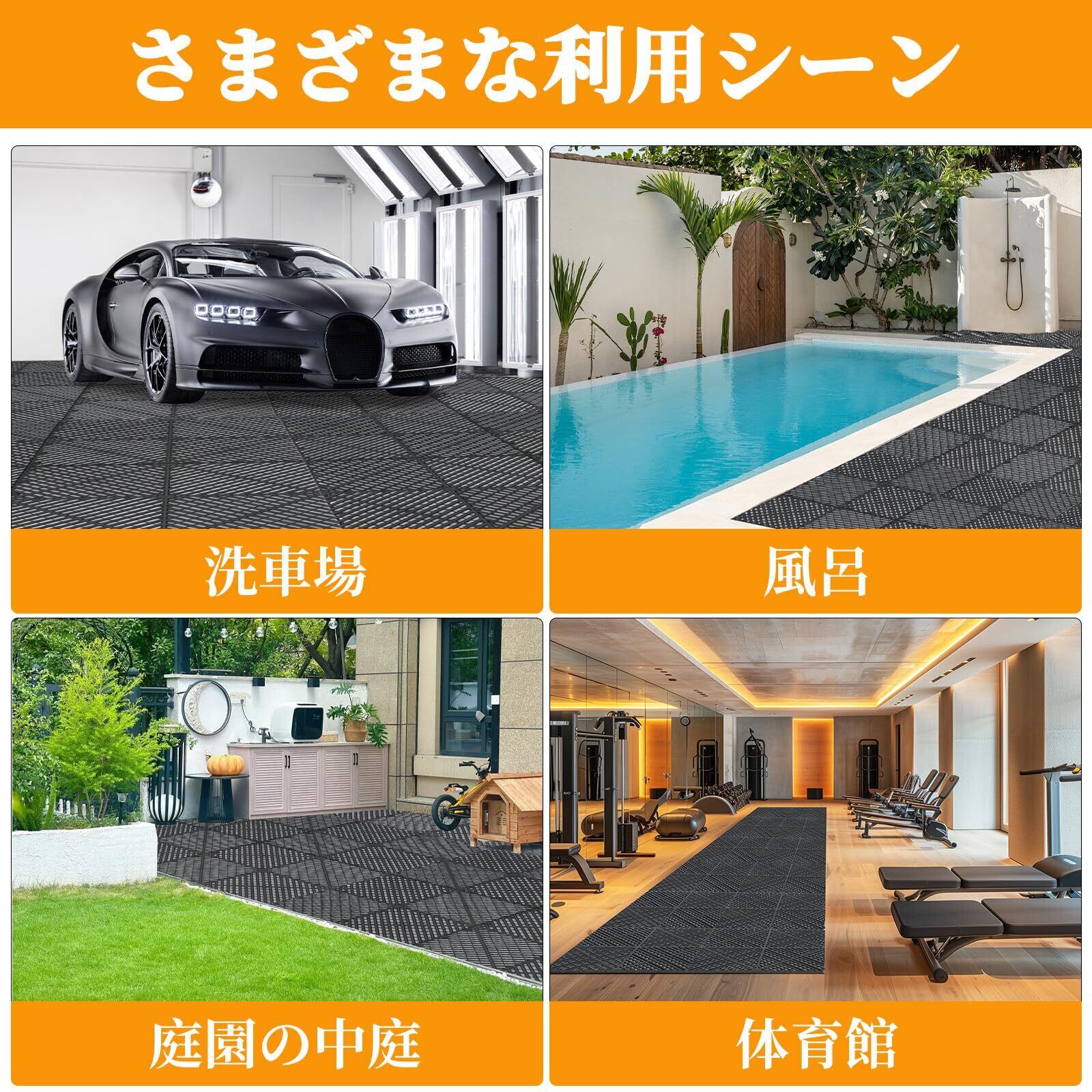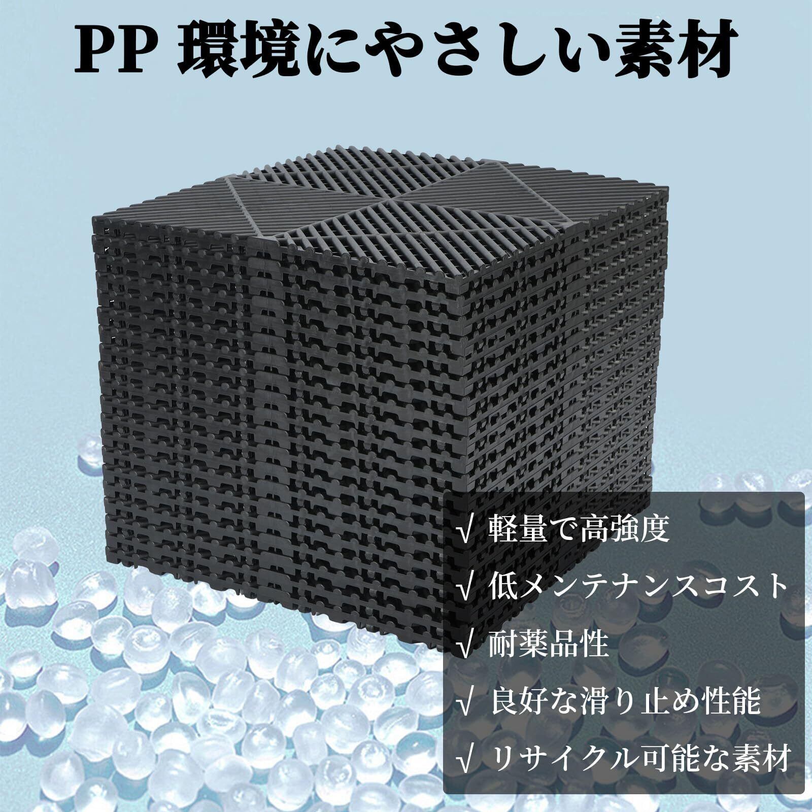 清掃とメンテナンスが簡単:オープン構造のガレージマットは、清掃が簡単で素早く行え、ポリプロピレン素材は、大型車の頻繁な出入りや高圧噴流の衝撃にも耐えることができます。 スナップオン式のモジュール設計により、施工中の敷設やが簡単です