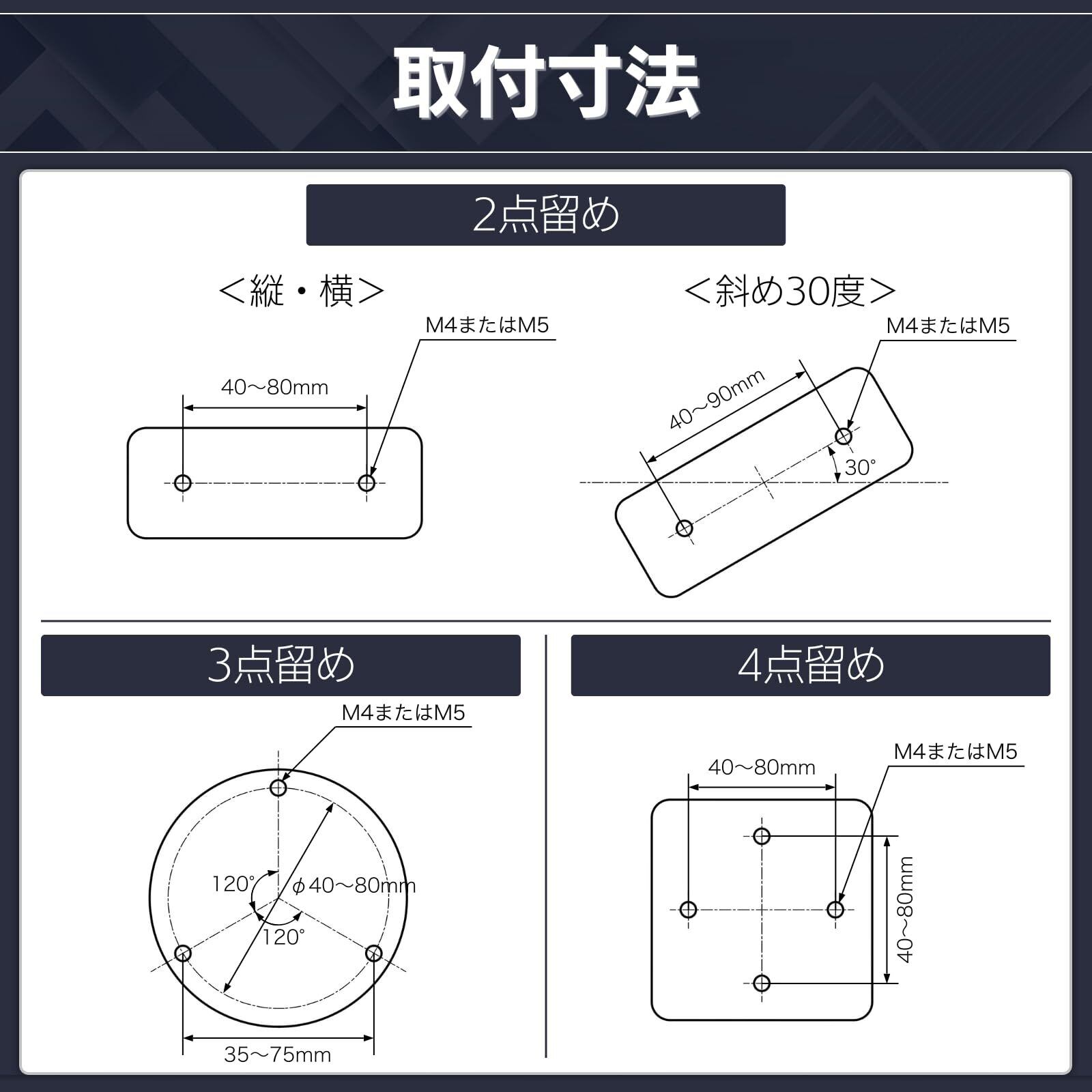 【様々なライトに適合】M4/M5ねじ用の取付穴は縦・横・斜めに長穴を配置され、多様な機種を取り付けることが可能