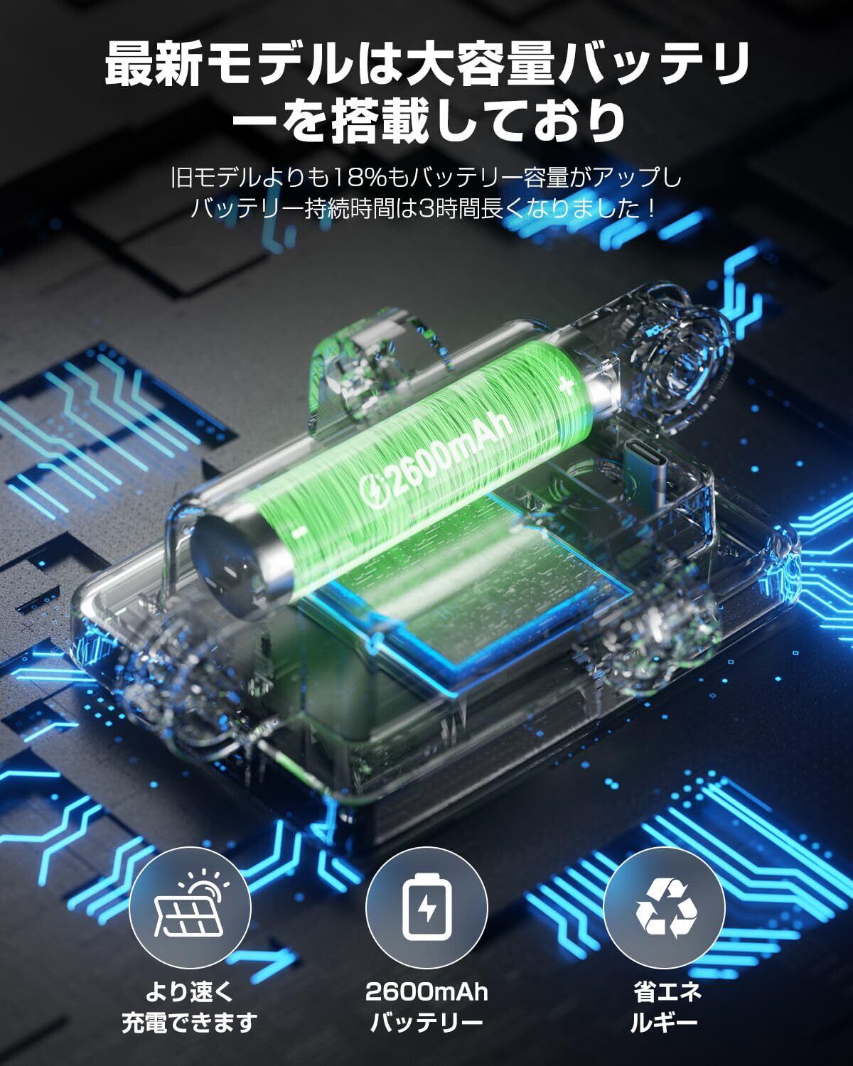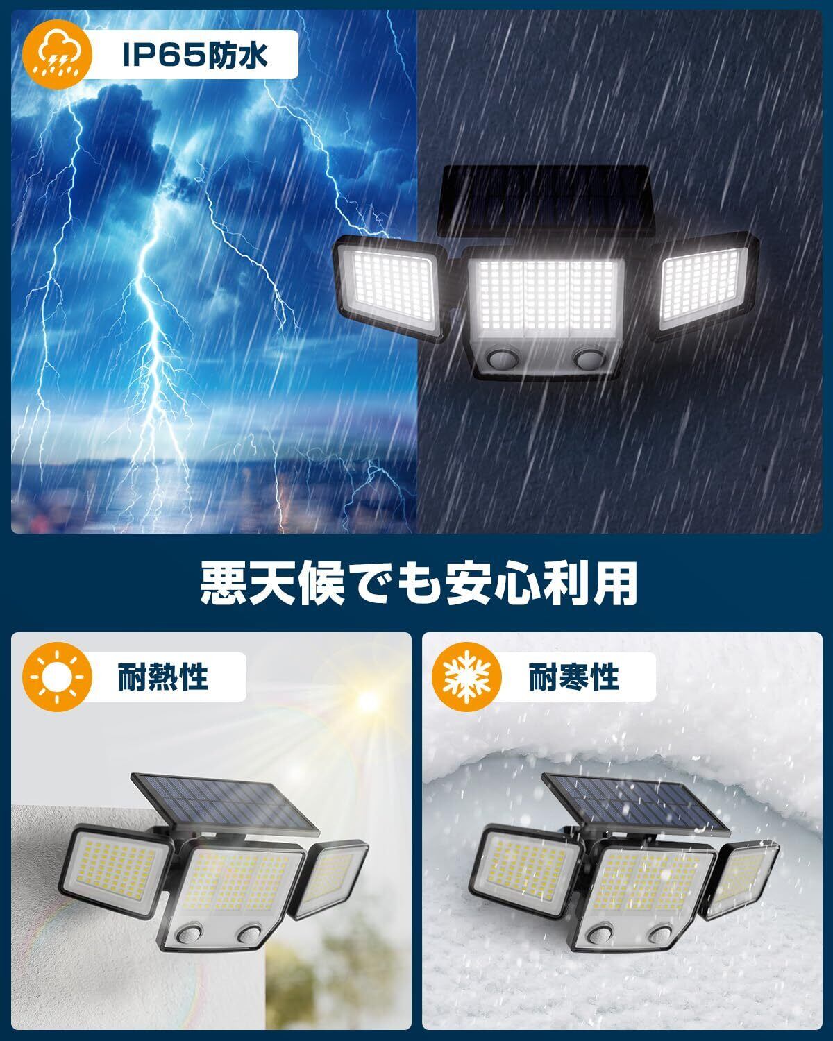 【IP65防水・2600mAh大容量】IP65全身防水設計を採用して、ABS樹脂製のシェルは耐熱・耐凍性が優れています。雨や風、厳しい天候にも対応でき、長期間の使用が可能です。庭、駐車場、玄関、廊下など様々な場面に活躍します。また、2600mAh大容量のバッテリーが内蔵されており、フル充電で雨の日でも日当たりの時間が短い冬でも長時間使用しても心配がありません。