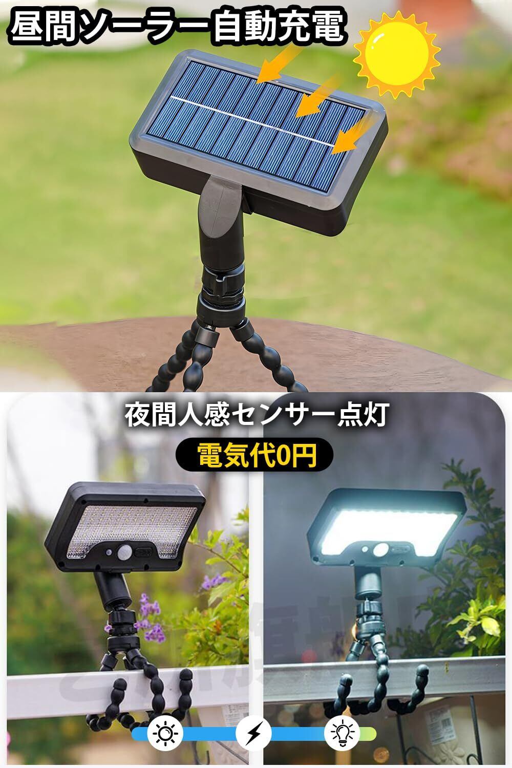 ソーラーライト 屋外 人感センサーライト 自在曲がり三脚付 1000lm 高輝度 昼白色6500K 3つ感知モード 明暗/人感センサー 360°調整可能 USB/ソーラー充電式 自動点灯消灯 IP65防水 省エネ 取り付け簡単 防犯対策 庭 ガーデン 駐車場 停電対策 (ブラック)