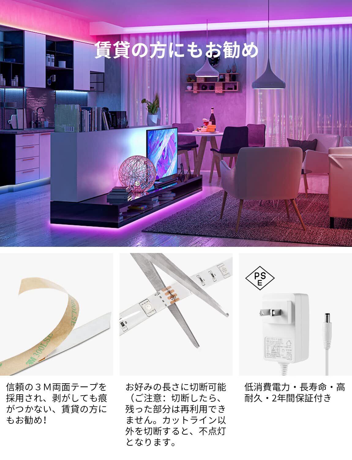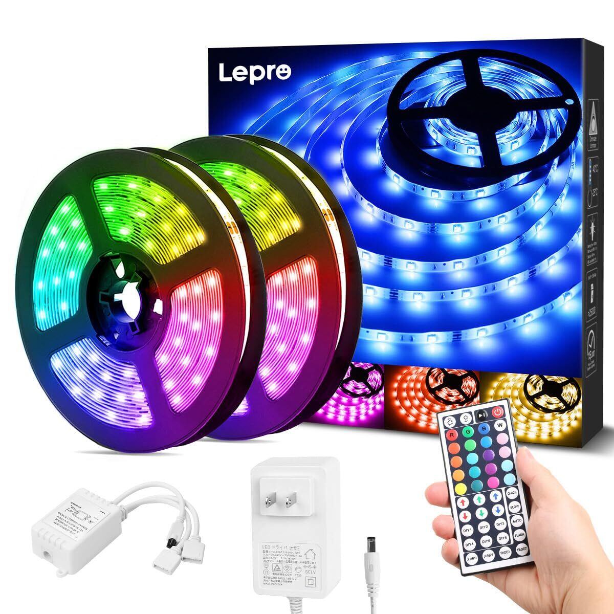 Lepro LEDテープライト SMD 5050 防水 10m (5m*2本) 300連 30leds/m 正面発光 RGB 明るさ調整 間接照明 両面テープ 切断可能 取付簡単 44キーリモコン 調光調色 DC12V電源 ライン・コーニス・什器・棚下照明 屋内外兼用 | KSショップ