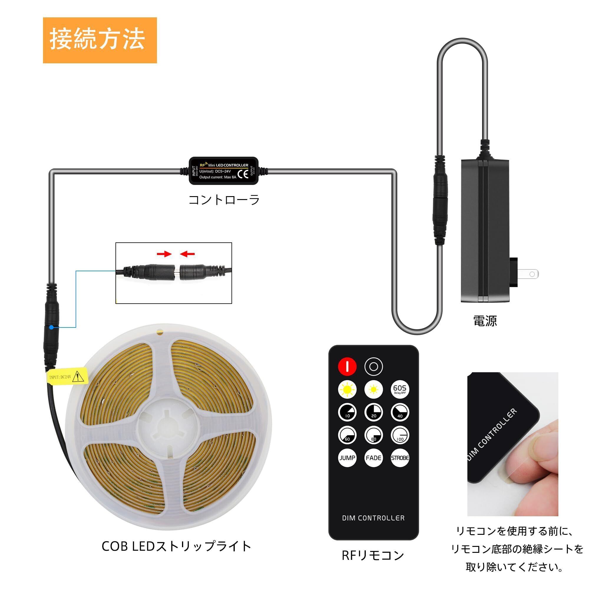 AXMOTUT COB LEDテープライト5m 24V 電球色 2700K 高輝度 調光可能 高密度 フレキシブル LEDテープライト 付きRF リモートおよび PSE認証電源 切断可能 取付簡単 工具不要 非防水 店舗 室内 ホーム装飾用 DIY | KSショップ
