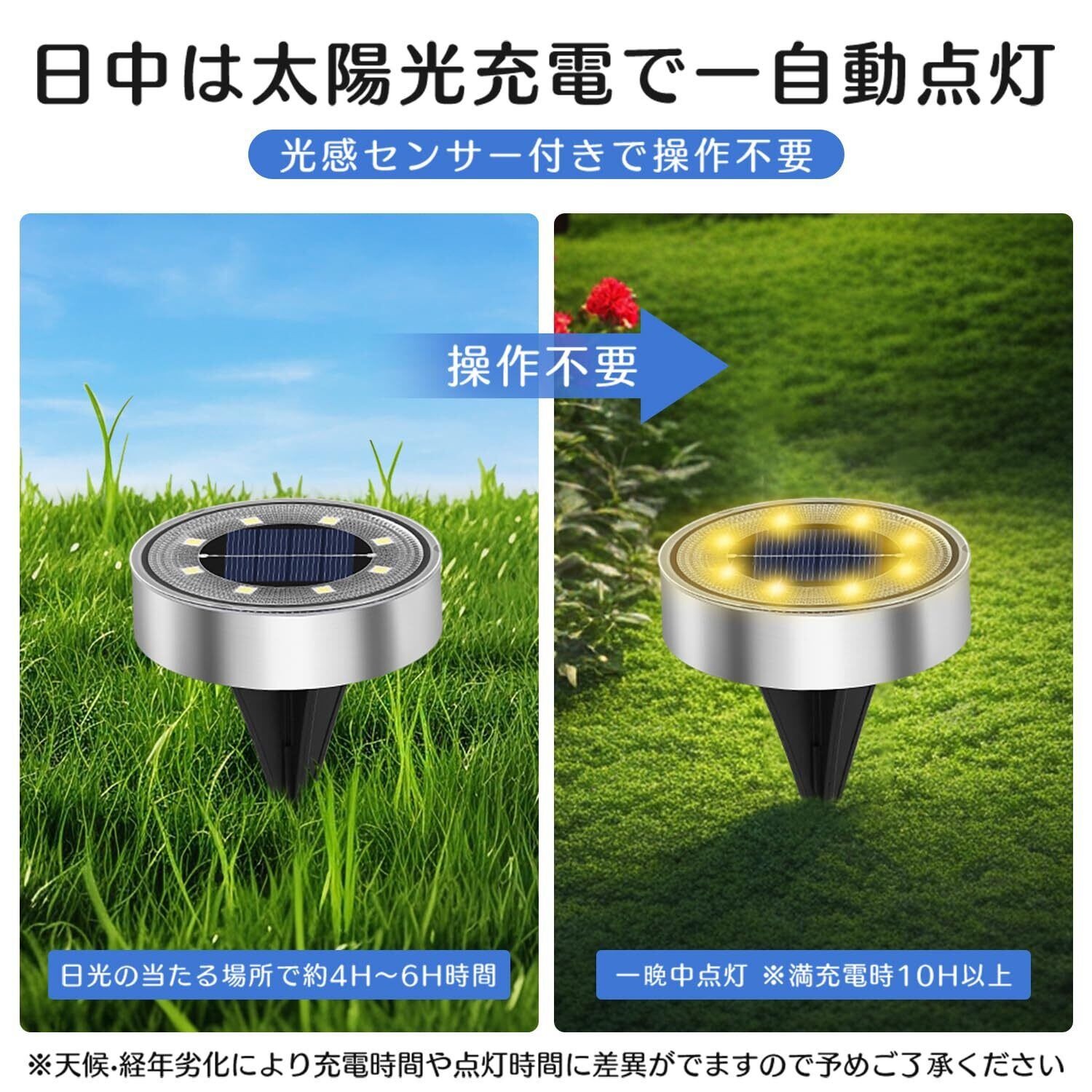 ソーラーライト 屋外 IP68防水 埋め込み式 ガーデンライト 自動点灯消灯 光センサー 太陽光パネル充電 高輝度 LED 庭/玄関先/芝生/車場/歩道 設置簡単 防災対策 防犯ライト 置き型 電球色 (8個セット) おしゃれ | KSショップ