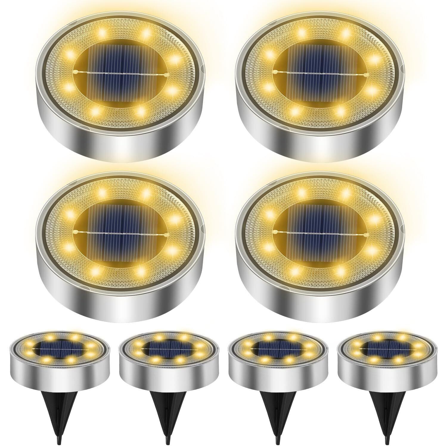 ソーラーライト 屋外 IP68防水 埋め込み式 ガーデンライト 自動点灯消灯 光センサー 太陽光パネル充電 高輝度 LED 庭/玄関先/芝生/車場/歩道 設置簡単 防災対策 防犯ライト 置き型 電球色 (8個セット) おしゃれ