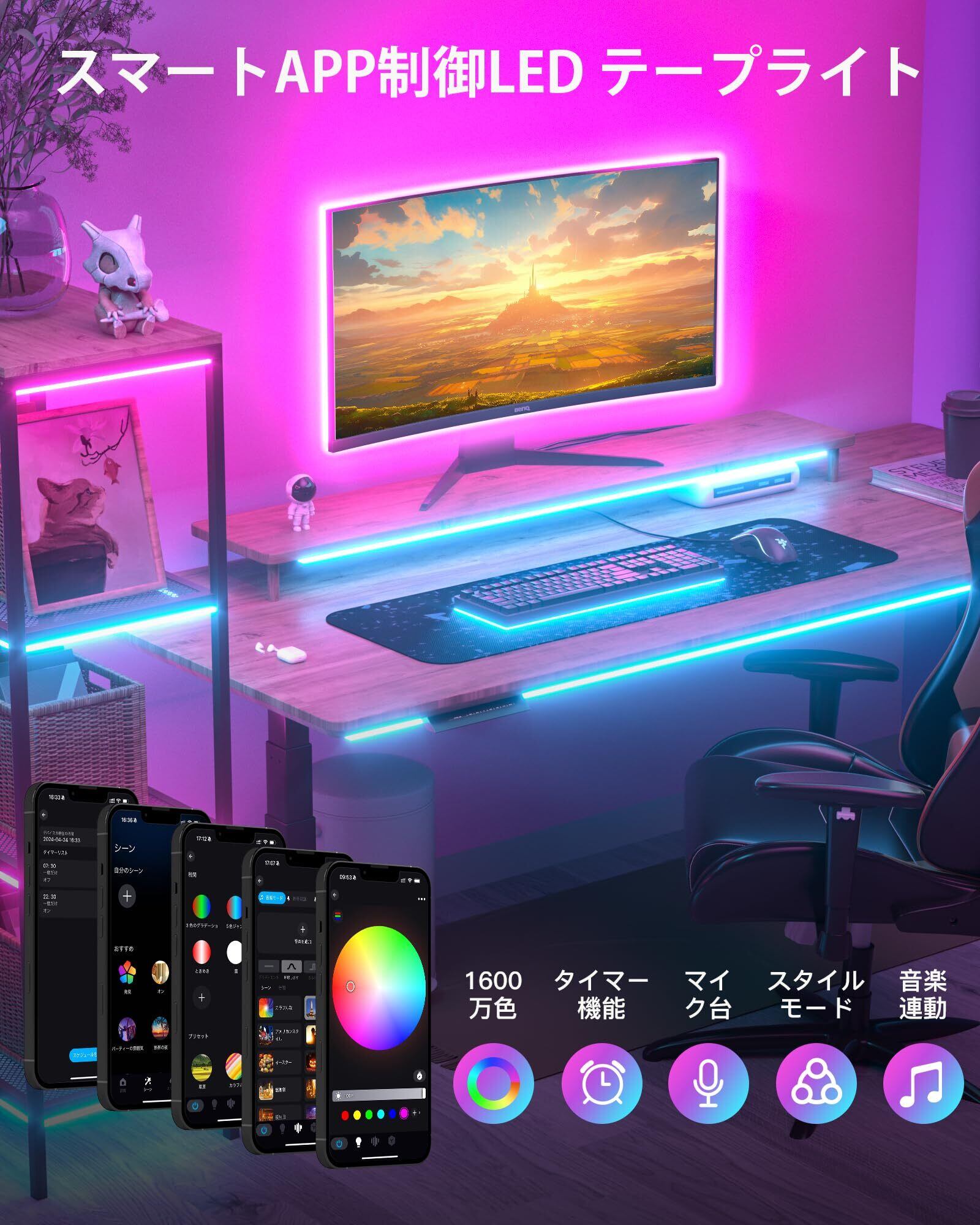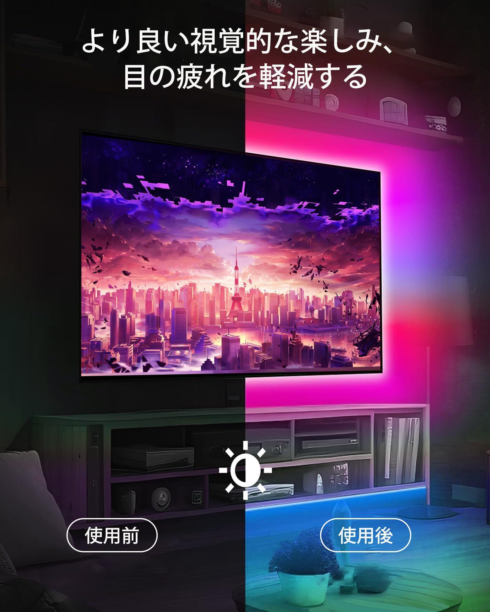 【音楽同期テレビLEDテープライト】- 私たちのledライトには高感度マイクが内蔵されています、テレビ中の音の変化を簡単に捉えることができます。アプリのマイクモードをオンにすると、音楽のリズムや映画のストーリーに合わせてテープ ライトがリアルタイムに変化し、今までにない没入的な体験をもたらします。伸びやかな歌声でも緊張感のあるストーリーでも、私たちのテレビrgb テープライトはあなたのために最高の雰囲気を作ることができて。