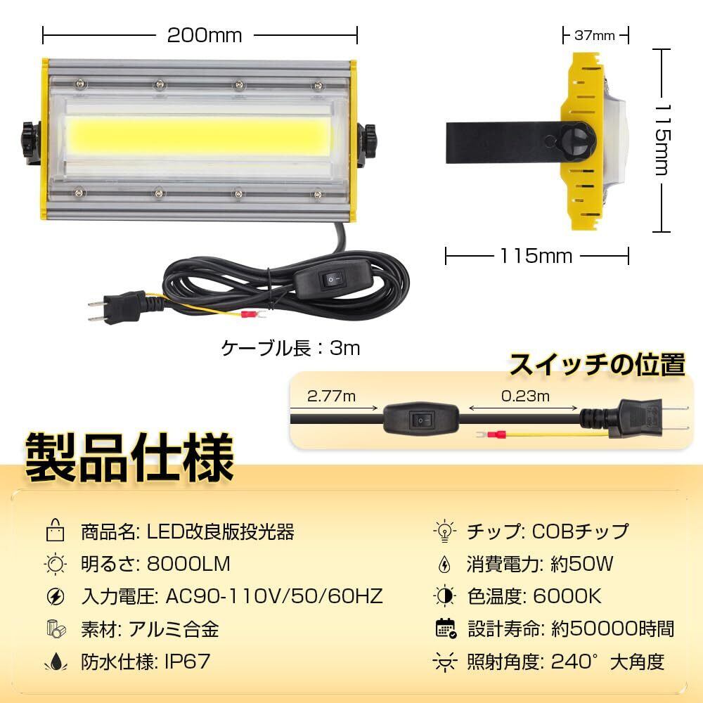 製品名称:LED投光器 消費電力:50w 電源:コンセント式 コード長:3m チップ:COB