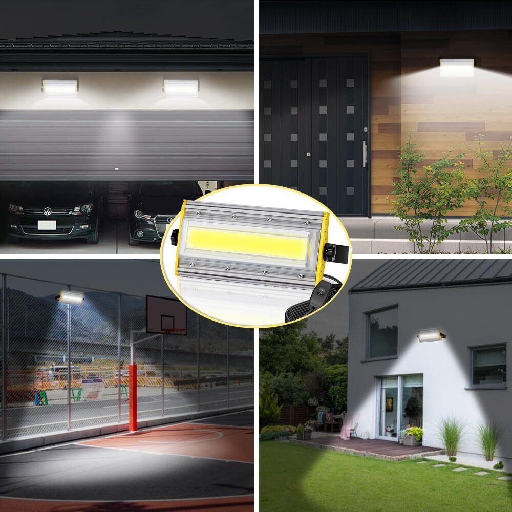 【角度調整可能&高輝度】:LED投光器は高品質COBLED高照度の新ランプ膜が搭載し、6000k昼白色、最高輝度は8000lmに達し、3mコード、電圧は80V-150Vに適しています。ライトのアルミニウム合金ブラケットは360度設置でき、0度から360度回転でき、発光角度は240度で、隙のない照明を実現し、どんな場合にも活躍できます。