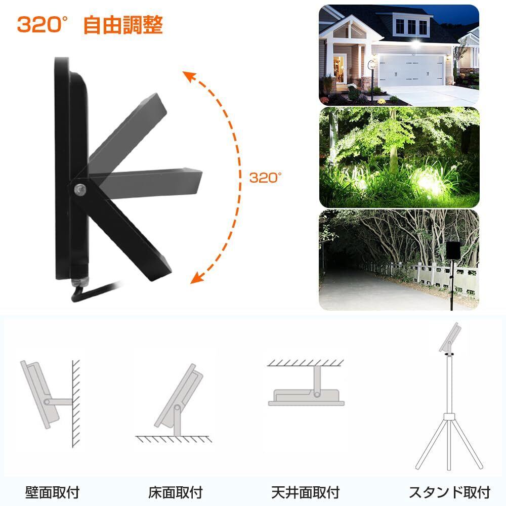 【超薄型&幅広い使用範囲】:本製品は超薄型で、場所を取らないだけでなく、見た目もコンパクトで精巧です。取り付けの難度も下がりました。LED投光器は180°角度調整でき、ニーズに応じて自由に角度を調節できます。作業灯、看板灯、駐車場灯、街灯などの室内室外照明、防犯、防災などの場合に適しています。車庫、庭、公園、夜釣り、BBQ、集魚灯、作業灯、現場工事としても使用できます。いろんな所で活躍できます。