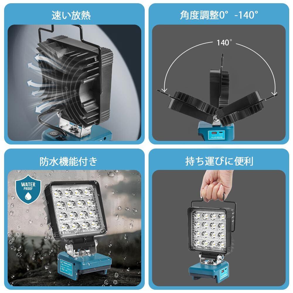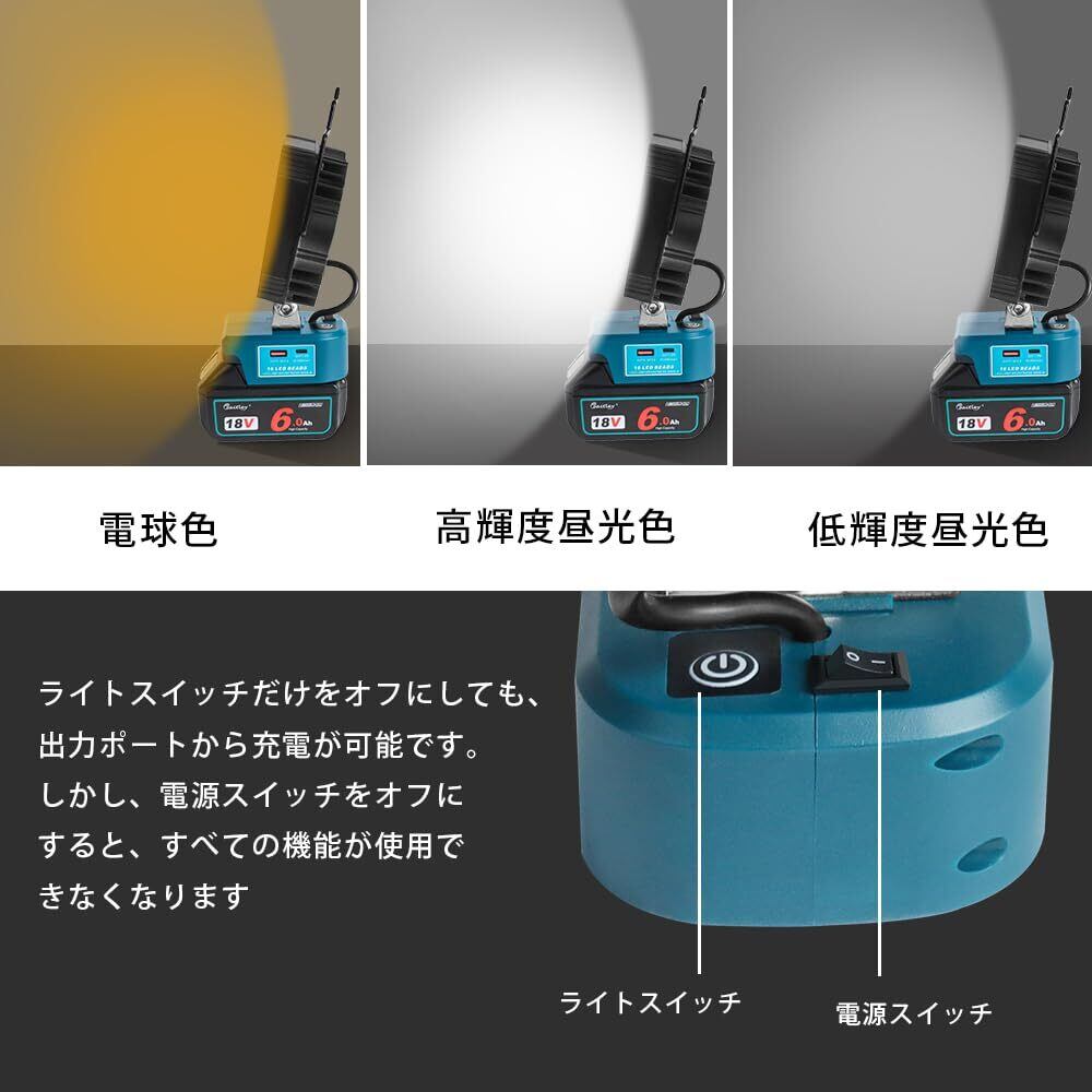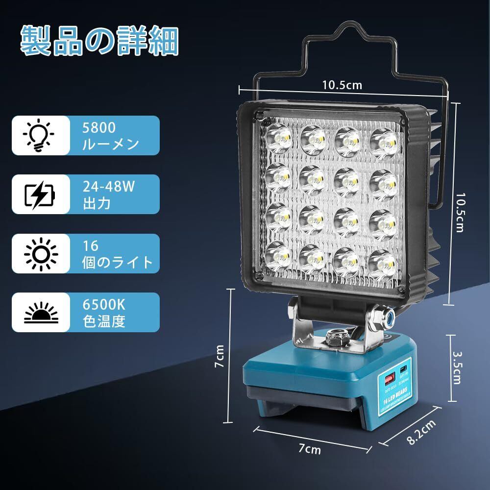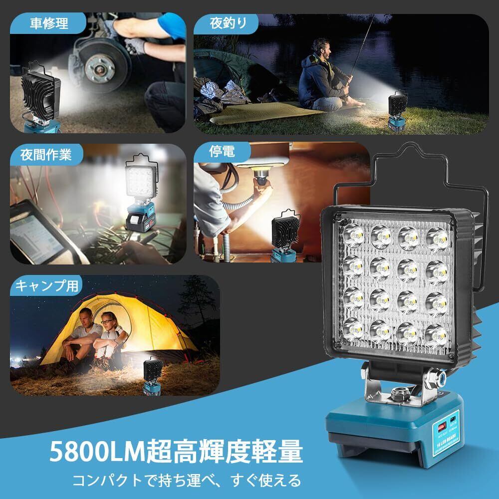 cootikieli_マキ_タ_コードレスワークライト 14.4/18V バッテリー対応 作業灯 led 充電式 48W 5800LM 超高輝 3つの点灯モード_マキ_タ_投光器 led USB充電 Type-C充電 フラッドライト 集魚灯 キャンプライト 釣りライト 防災/工事現場/屋外作業/非常用照明に対応 津波時の非常用備品に適し(バッテリー別売)