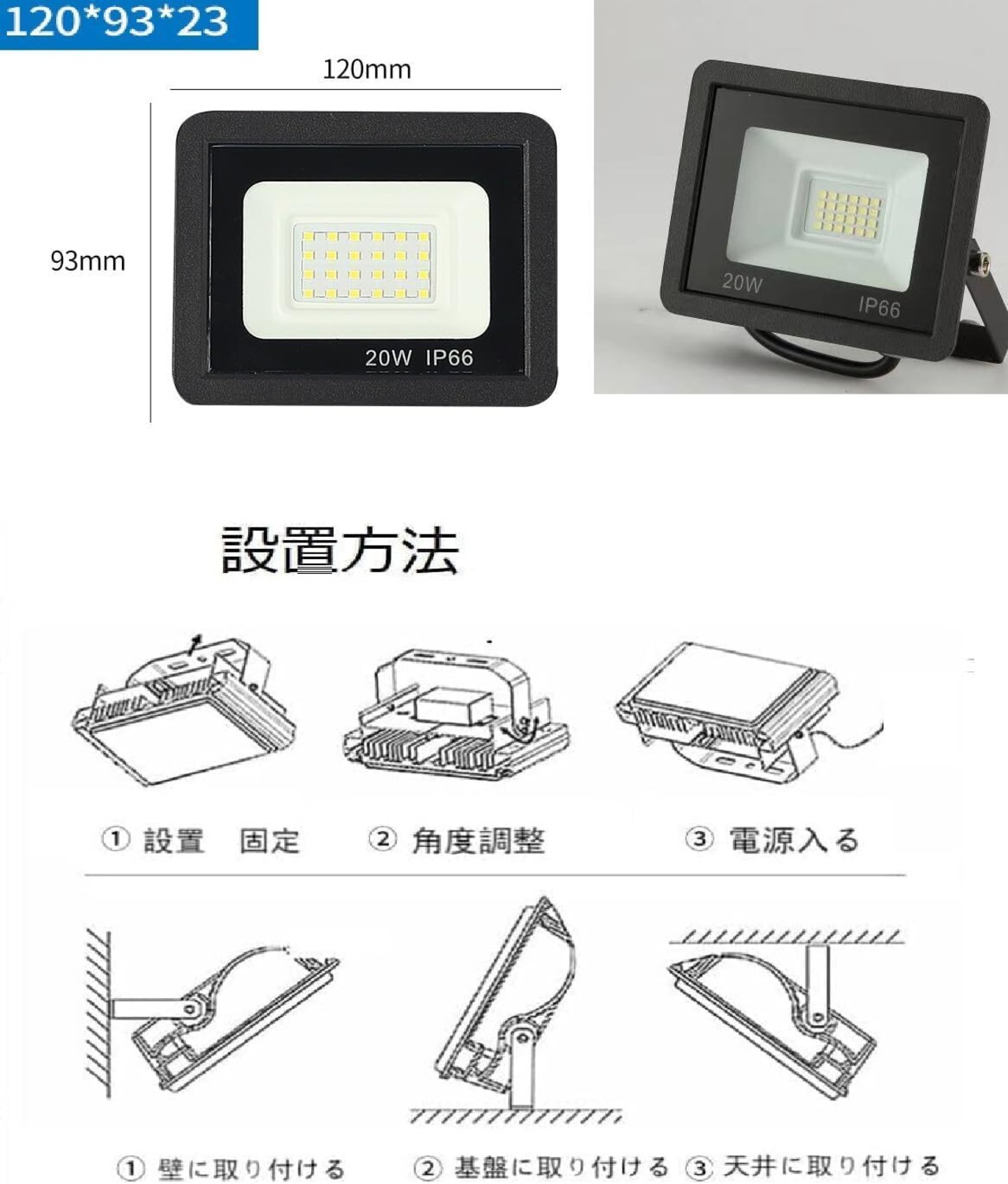 プロ仕様の高輝度LED投光器が登場! 屋外でも屋内でも、これ一台で強力に照らす!20Wの省エネ設計でありながら、IP66等級の防水・防塵性能を備え、悪天候の中でも安心して使用可能。駐車場、作業現場、キャンプ、BBQ、看板照明など、あらゆるシーンに最適です。 1.7mの長さの電源コードで設置も柔軟。コンパクトかつ耐衝撃設計で、持ち運びやすく収納にも困りません。照射角度120°の広範囲をカバーし、明るさにムラがありません。85-265V対応で、日本国内どこでも使用可能。防犯対策や夜間の安全確保にも大活躍します!