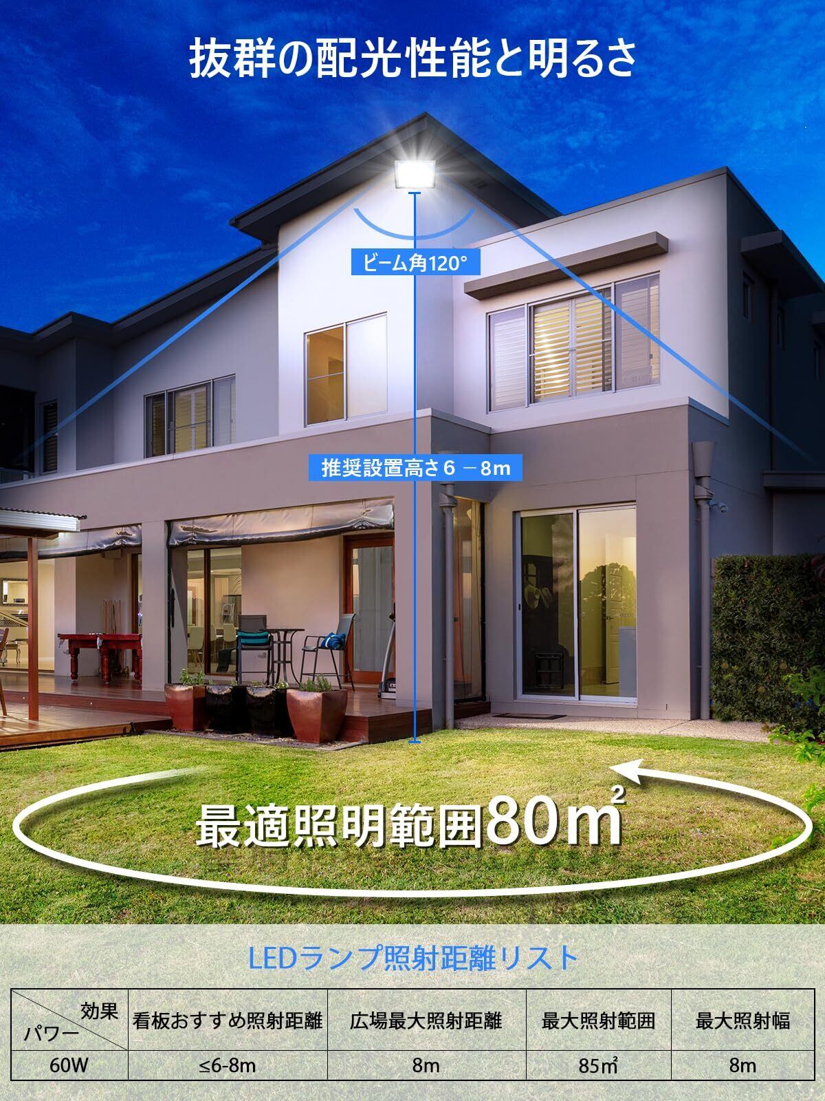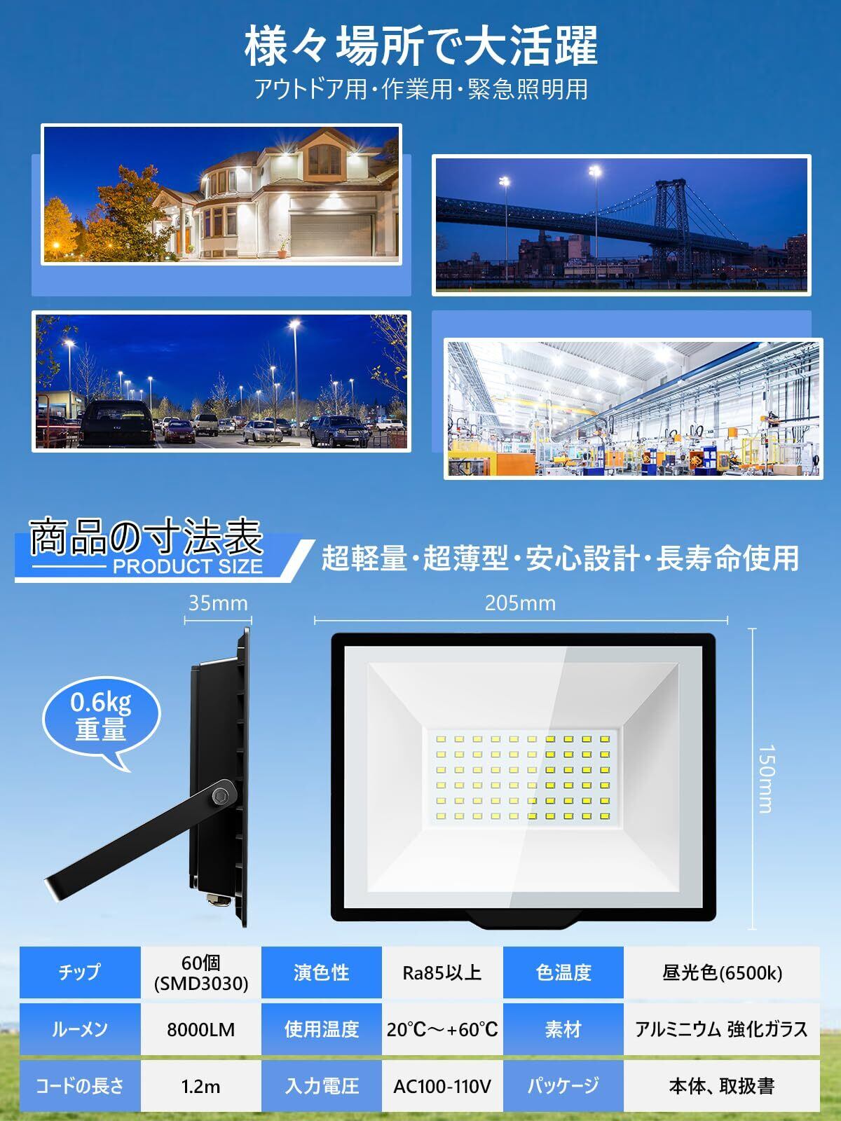 KIWEN led投光器 屋外 防水 作業灯 100v 60w 8000ルーメン 高輝度 800w相当 投光器 屋外 超軽量 投光器 100v 超薄型 省エネ 投光器 防水 120°広角 IP66 PSE認証済 集魚灯 看板灯 駐車場 ガレージ 倉庫 BBQ 野外 工事用 日本語取扱説明書 2個セット | KSショップ