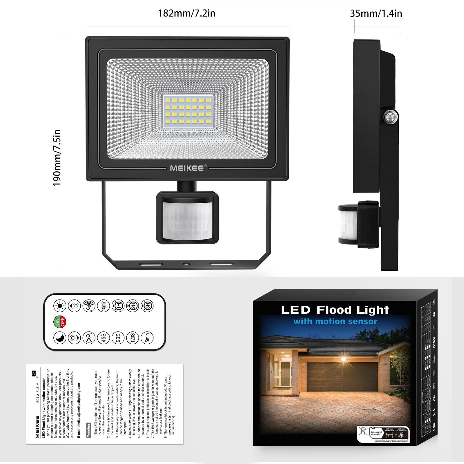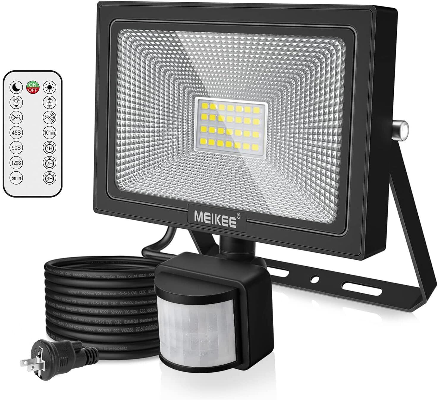 MEIKEE【2023年改良 リモコン操作】センサーライト 屋外 人感投光器 防犯照明 20W 2500LM 常時点灯機能 無段階調光 PIR人感 検出距離調整 昼白色6500K 超高輝度 駐車場 玄関灯 倉庫 屋内 町内の防犯に IP66防水 日本語説明書付き PSE認証済 適格請求書発行可能 | KSショップ