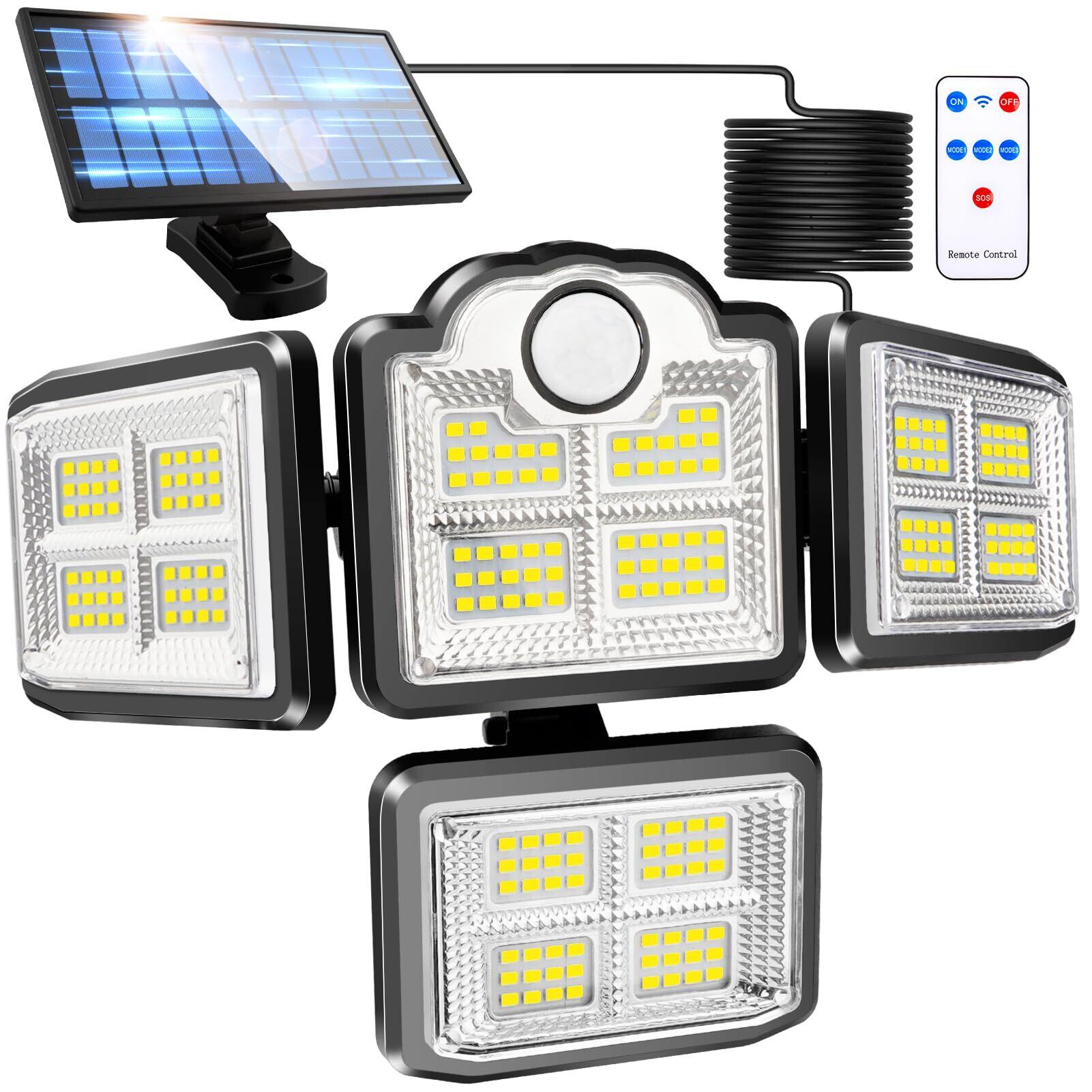 Bst Jyob ソーラーライト 屋外 センサーライト 防水 【2025初売り 銀シルバー蒸着塗装付き 超高輝度】 LED 人感 太陽光発電 光感 電気代不要 分離型 5mケーブル付き 自動点灯/消灯 リモコン付き 壁掛け式 フリーアーム式 ソーラー式 4面発光 シルバー