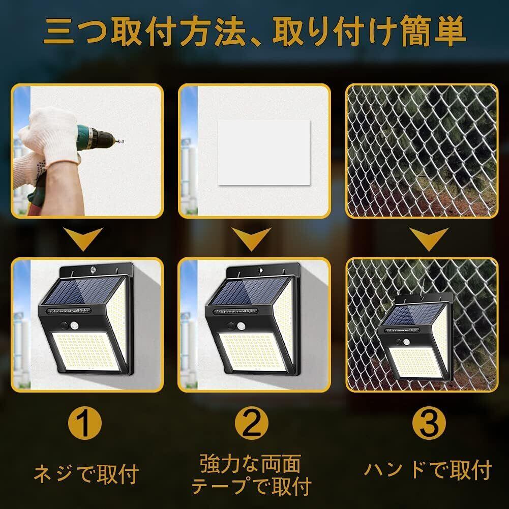 BINGONE 220LED センサーライト ソーラーライト 3面発光 2800mAh 大容量 IP65防水 屋外照明 人感センサー 3つ点灯モード 防犯ライト 両面テープ付き 自動点灯 太陽光発電 ガーデンライト 屋外/玄関/廊下/軒先/駐車場 防災対応 2個セット | KSショップ