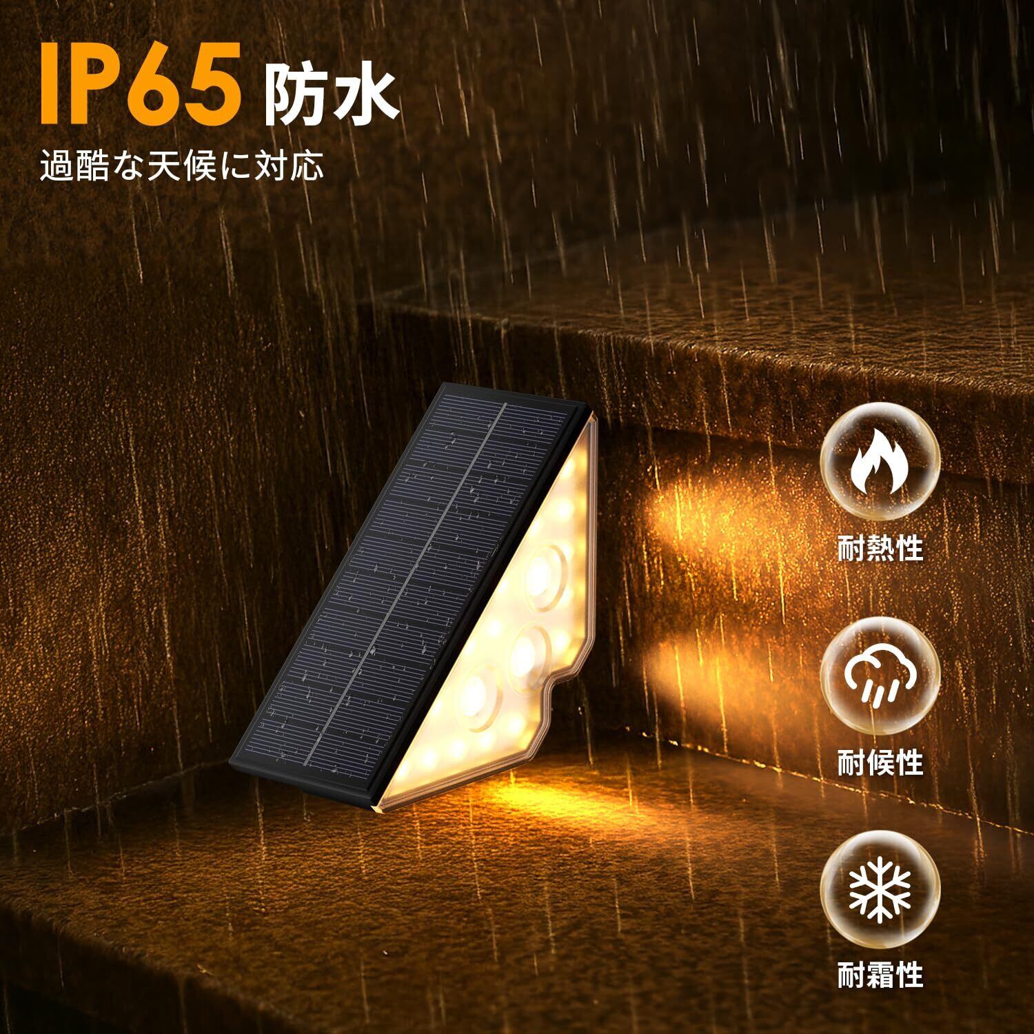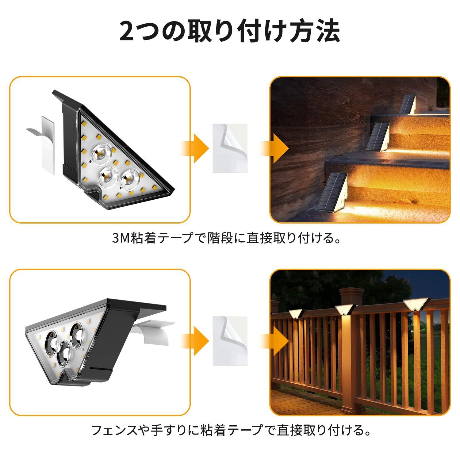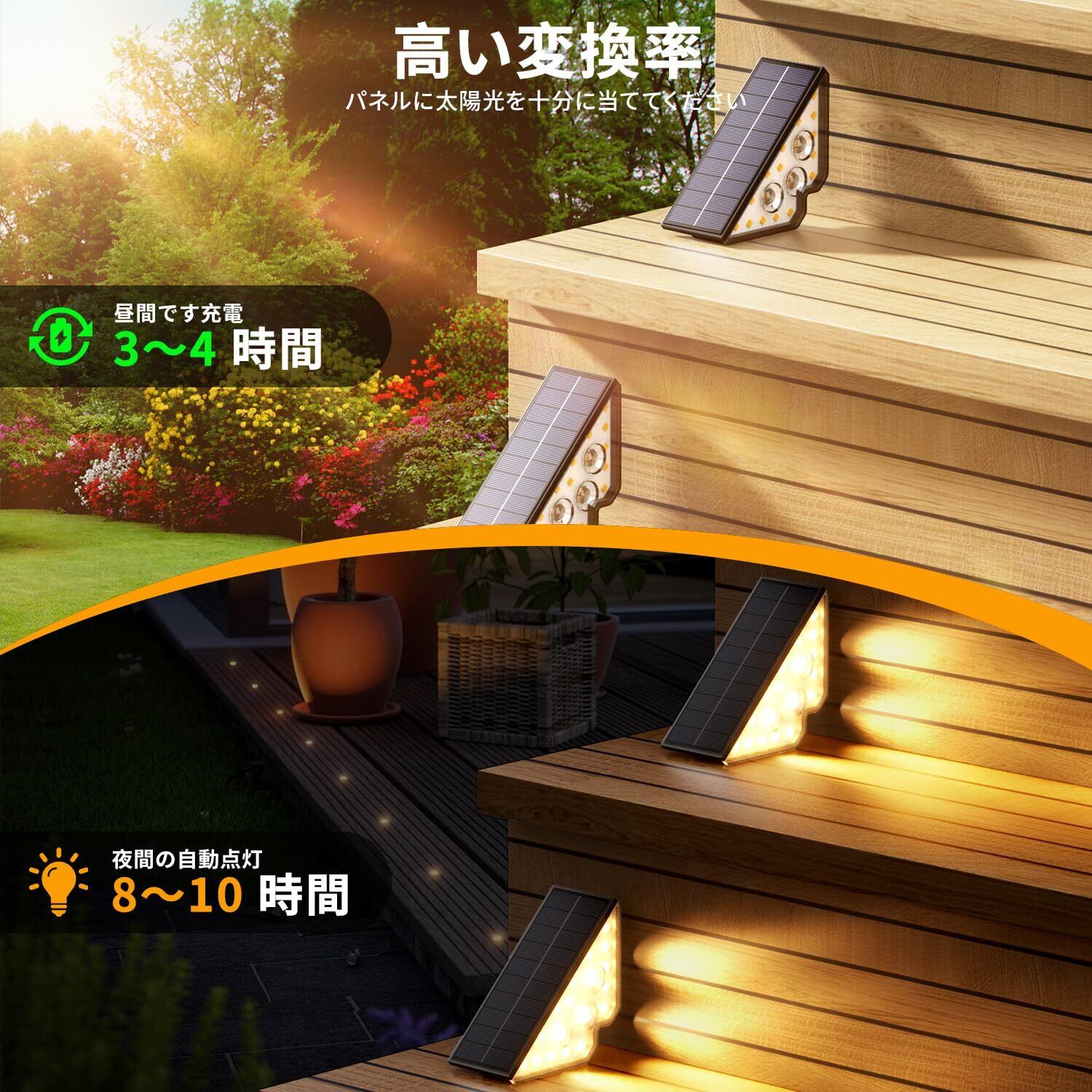 ソーラーライト階段屋外 ステップライト IP65防水 ソーラーデッキ 自動充電 自動点灯 取付簡単 夜間作業 通路 歩道 玄関用 電球色 6個セット
