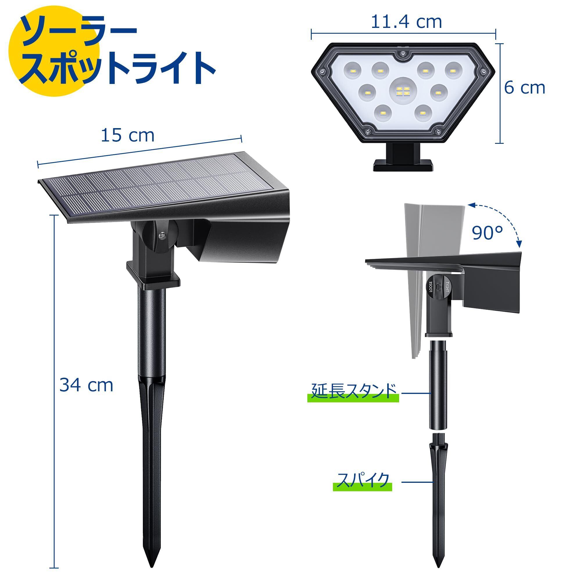 NFESOLAR ソーラー ガーデンライト スポットライト ソーラーライト屋外 庭園照明 明暗センサー 自動点灯/消灯 2200mAh大容量 IP67防水 防犯 防災 夜間自動点灯/昼間自動消灯 地中埋込型 パス 芝生/車道/壁掛け/歩道/植木/玄関先 ライトアップ アウトドア スポット | KSショップ