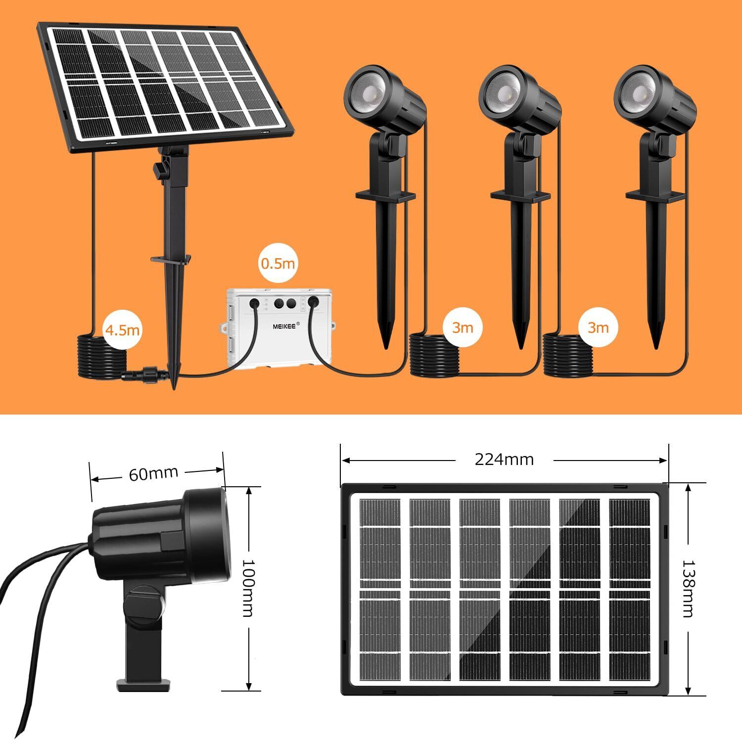 MEIKEE 改良版ソーラー ガーデンライト ソーラーライト 屋外 【リモコン付き】スポットライト電球色 昼白色 昼光色 3色切替 3段階調光 IP66防水 5000mAH 200LM*3 明暗センサー 自動点灯/消灯 連続点灯12時間可能 タイミング機能 2H/4H/6H常時点灯可能 メモリー機能 電気代0 庭園照明 防犯対策 玄関先 庭 車道 芝生 1年間 適格請求書発行可能