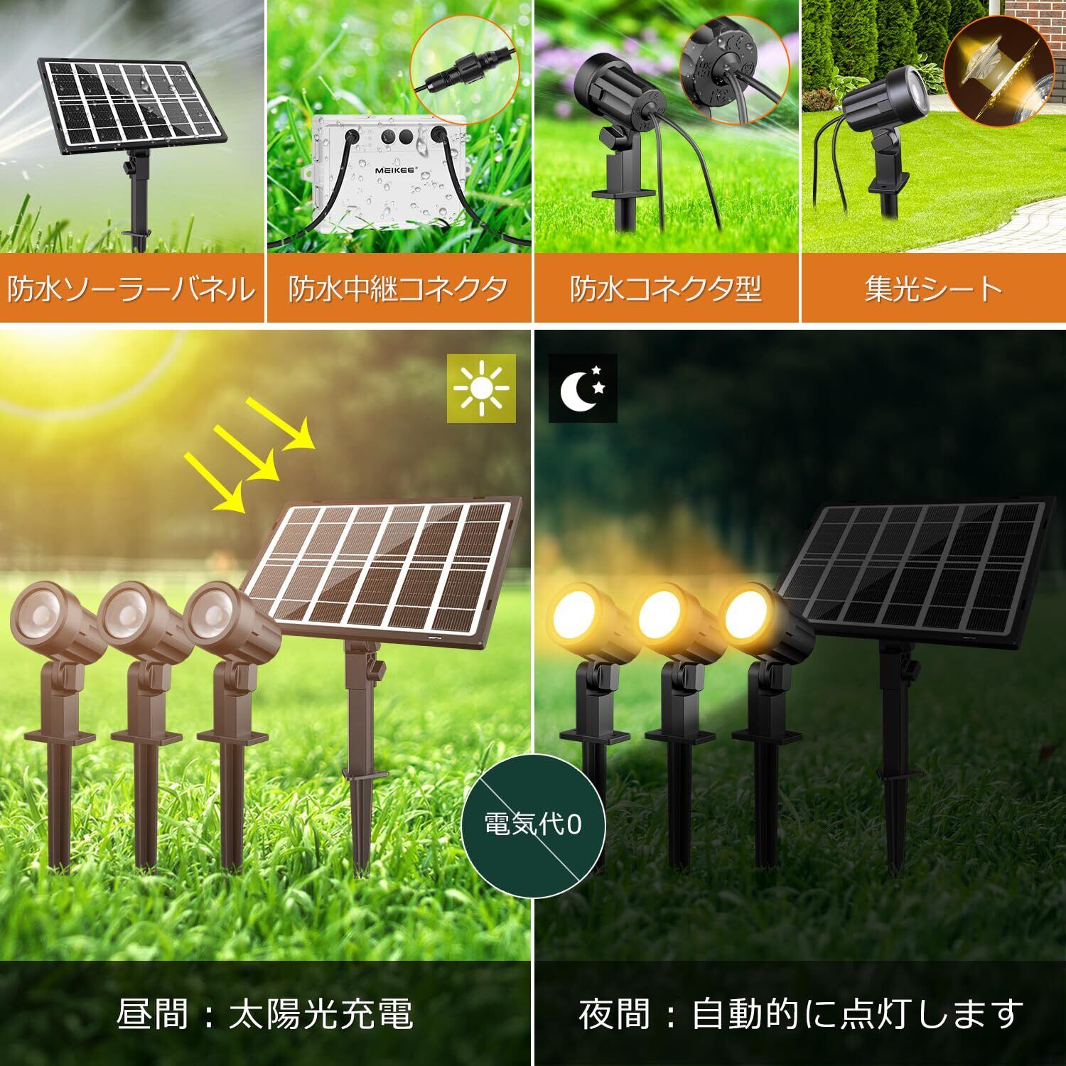 MEIKEE 改良版ソーラー ガーデンライト ソーラーライト 屋外 【リモコン付き】スポットライト電球色 昼白色 昼光色 3色切替 3段階調光 IP66防水 5000mAH 200LM*3 明暗センサー 自動点灯/消灯 連続点灯12時間可能 タイミング機能 2H/4H/6H常時点灯可能 メモリー機能 電気代0 庭園照明 防犯対策 玄関先 庭 車道 芝生 1年間 適格請求書発行可能 | KSショップ