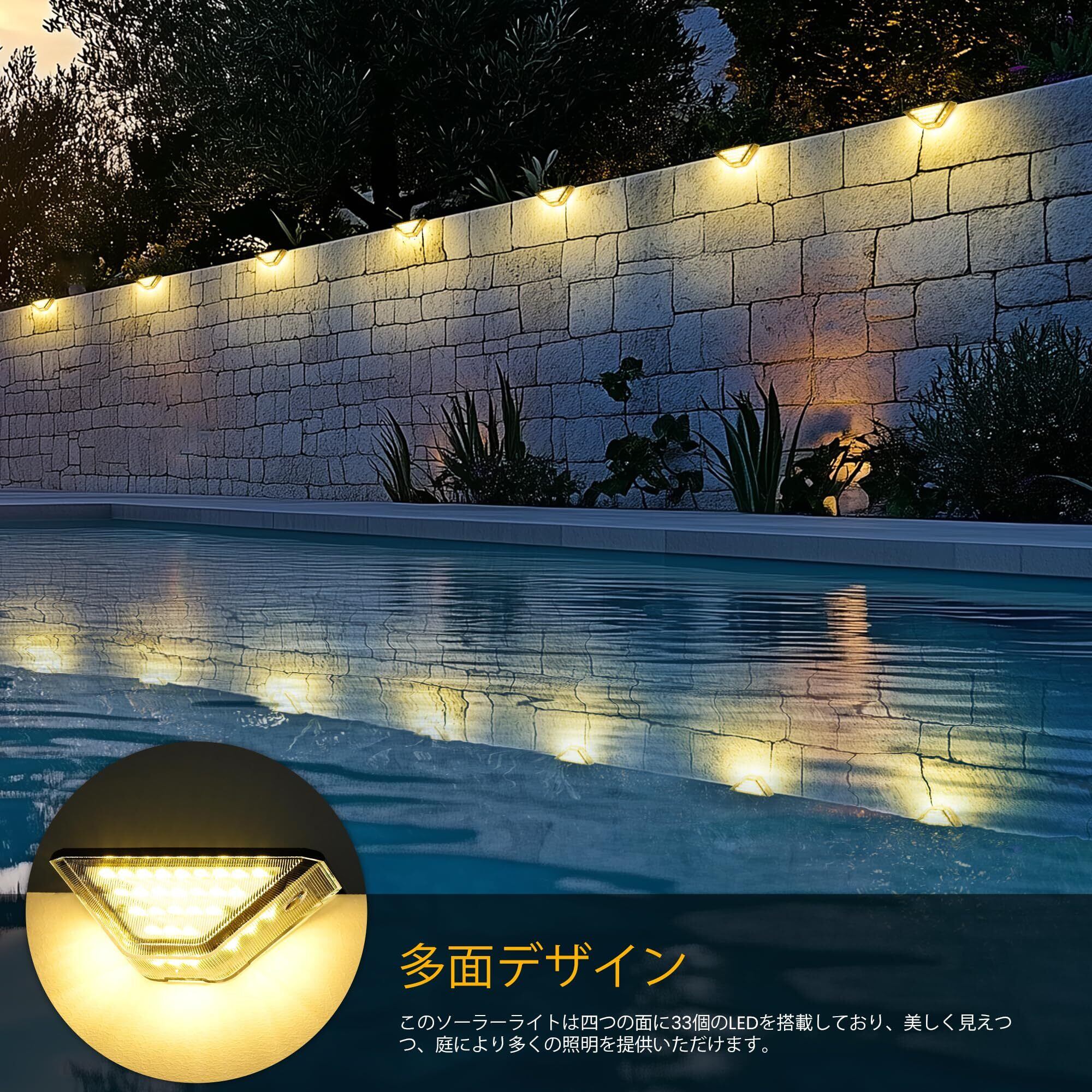 【幅広い用途】アウトドア・ホームデコレーション照明に幅広く使用!ネジと3M両面テープ付きで多くの場所に気軽に設置できます。階段、玄関前、駐車場、軒/フェンス/庭、ガレージ、ガーデン、遊び場、公園、庭などに適用。夜間は自動点灯するので、安全性が向上し、生活にも楽しさをもたらします。装飾ライトとしても最適です。商品の品質につきましては万全を期しておりますが、万が一、破損、汚損、などが発生しました場合、に連絡してお願いいたします。いつでもどこでもお問い合わせください。